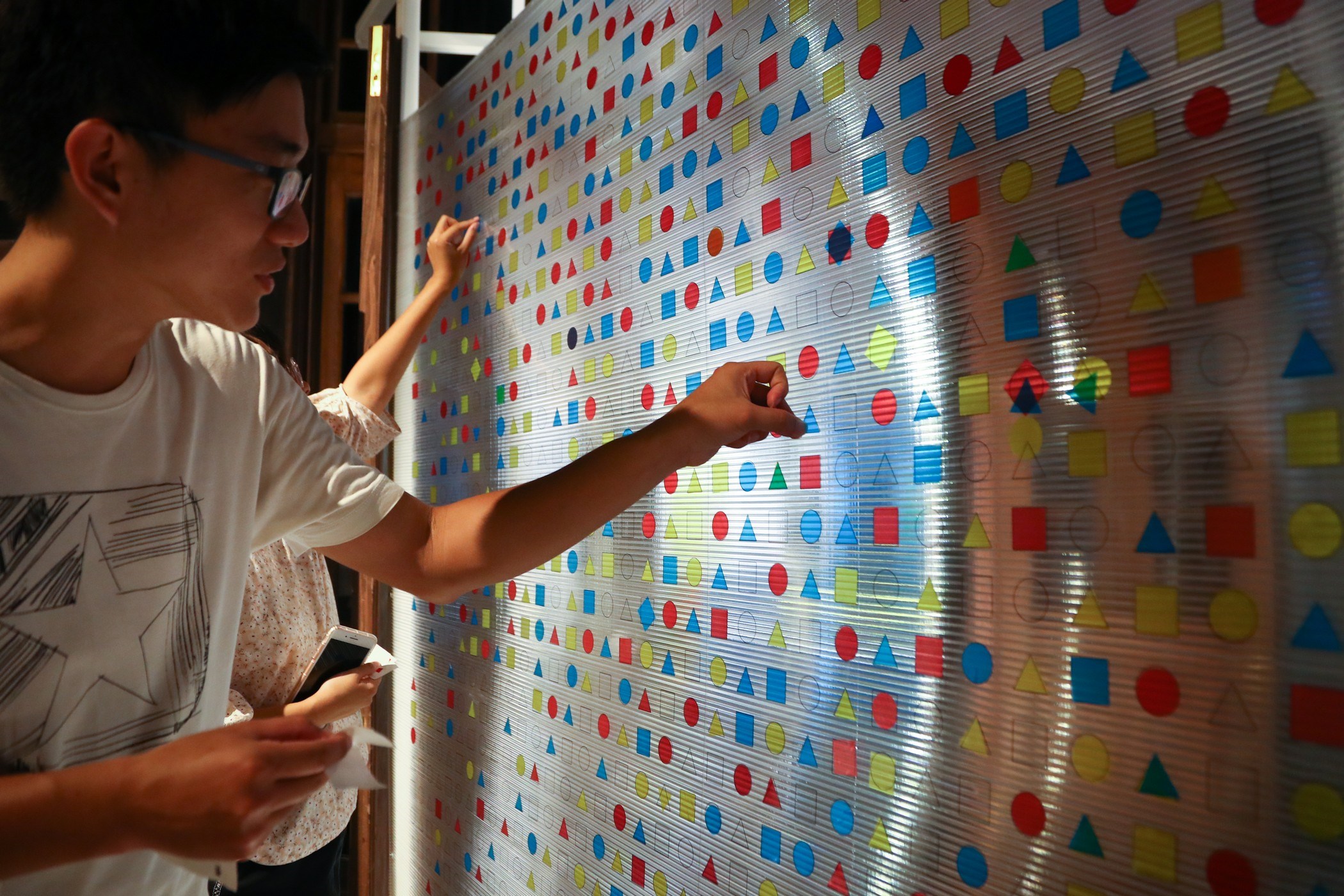 「包浩斯然後呢」展覽中也重啟這個調查,讓民眾透過貼紙,標示出心目中什麼樣的顏色應該配對什麼樣的形體。有趣的是,在100年後,很多民眾對於色系與形體的配對有更多想像,有的人則是將色系堆疊,創造出綠色、橘色、紫色等色系。