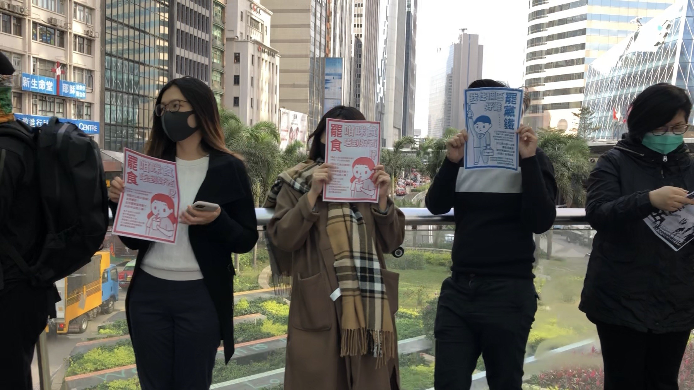 線上資訊傳遞無遠弗屆,到了線下還有連儂牆跟展覽。我12月赴香港時,除了街坊連儂牆,許多人更趁午休「陪你Lunch」,他們在天橋上辦起行動文宣展,邊呼口號邊展示手中傳單,告訴路過民眾運動半年來的種種,提醒人們勿忘抗議初衷。