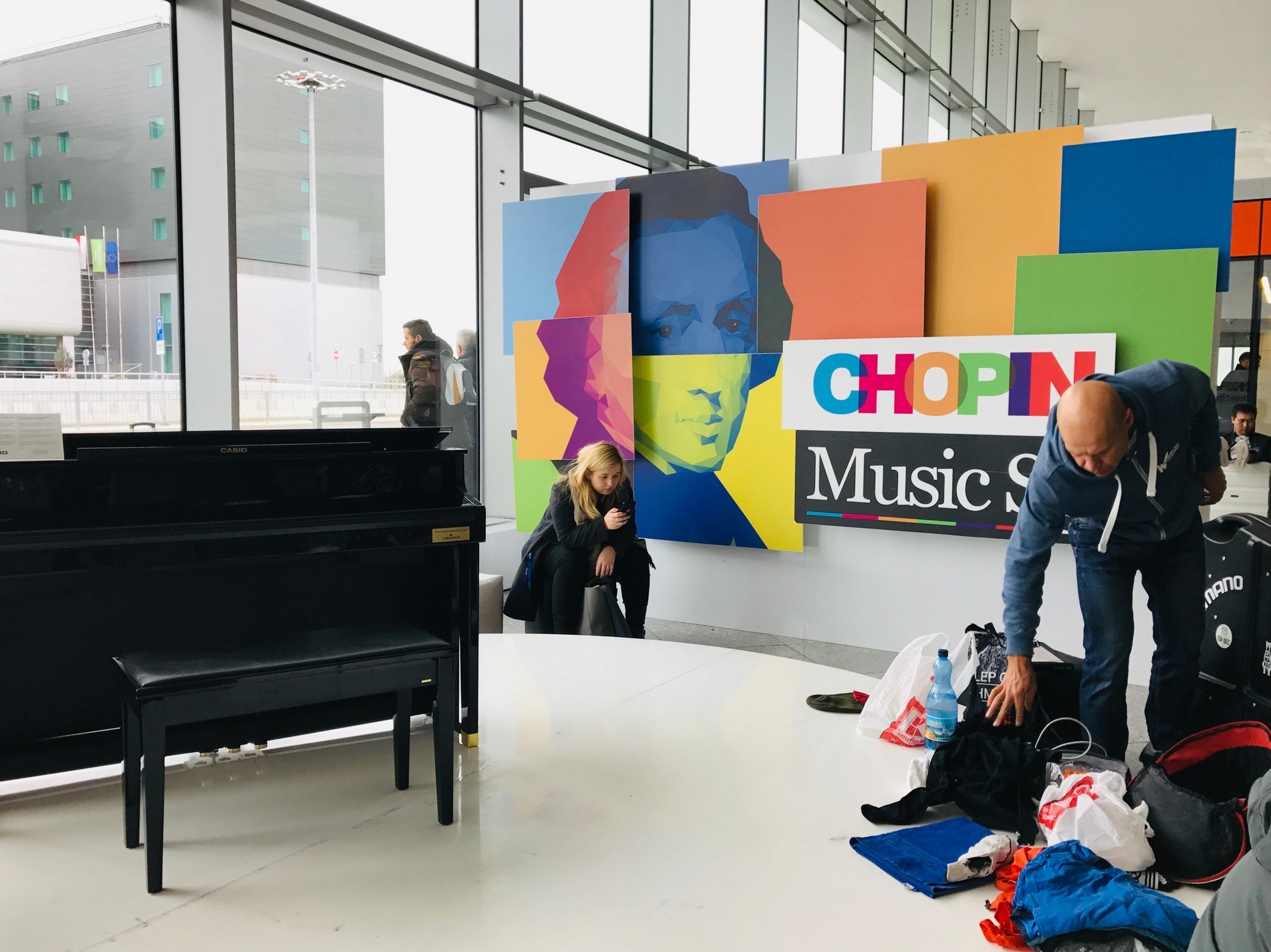 旁邊圍繞一圈旅客,行李先擺在地上,琴音當然不比音樂廳內的晶瑩剔透,但旅人如我則因音樂神情輕鬆了起來,演罷拍手鼓勵好不吝嗇,而我只駐足聆聽了幾分鐘,還來不及拍下演奏的畫面,但看到機場沒有放賓士或是特斯拉等名車展售而放了一台鋼琴感到欣喜,一查之下,原來華沙蕭邦國際機場也是蕭邦國際鋼琴大賽(International Chopin Piano Competition)的合作夥伴。