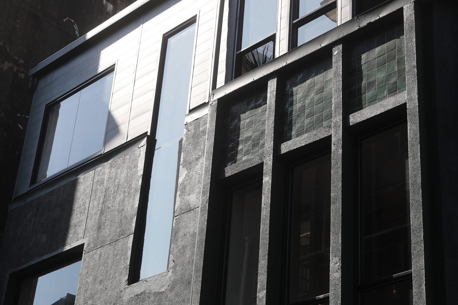 「貳房苑」以綠色為整棟建築的設計核心,外觀上貼的磁磚就是最為明顯的指標,綠得令人不得不注意,「我們發現這附近的老房子,他們很喜歡用一些馬賽克磚,就是青色、黃色或是綠色,在這個潮州街上,綠色從設計的角度看好像是一個隱性的顏色。」