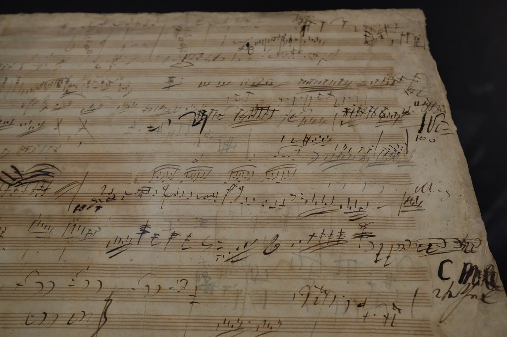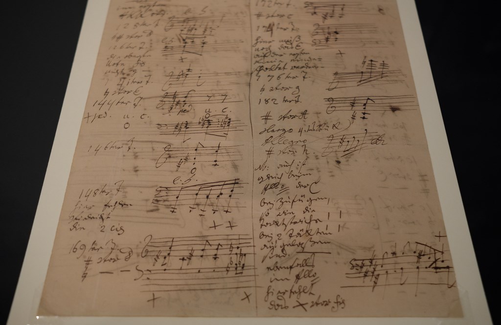 貝多芬過世後,手稿分散各處,很少集中在一起展出,因此對愛樂者來說,波昂特展最吸引人的部分無疑是書信和鋼琴奏鳴曲、四重奏和交響曲等手稿,例如柏林國立圖書館珍藏、被聯合國教科文組織列入世界記憶名錄的第9號交響曲「合唱」。細看手稿不僅可觀察貝多芬對主題和樂句的思考,還可找到許多用筆劃掉或用刀割掉的痕跡,顯然貝多芬為了追求完美,在定稿前一改再改。