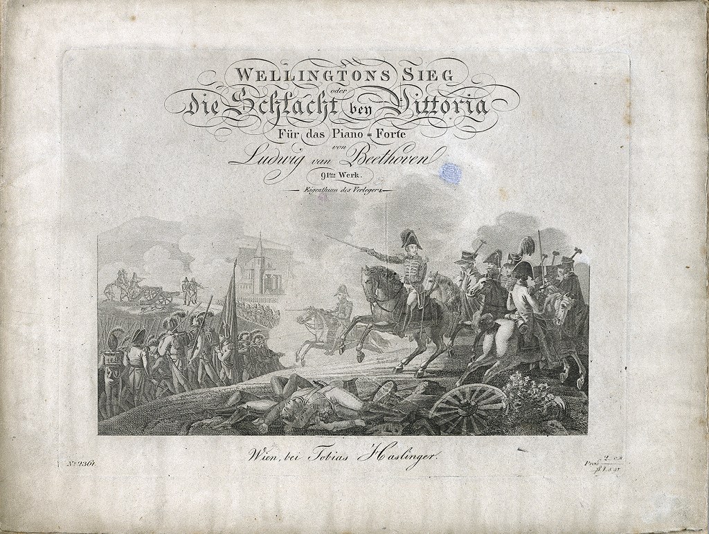 1814年,拿破崙戰敗,歐洲結束25年的戰事,各國領袖齊聚維也納開會,重新分配歐洲秩序,貝多芬把握機會創作了應景的作品「威靈頓的勝利」(Wellingtons Sieg)。這首歌頌英軍戰勝法軍的管弦樂作品,穿插隆隆炮聲和愛國歌曲「天佑吾王」(God Save the King),乍聽之下像是膚淺的電影配樂,從貝多芬的標準來看應屬敷衍之作,但結果卻讓與會的歐洲列強開心地不得了,不僅讓他大賺一筆,名聲從此也傳遍全歐,貝多芬因此也可稱是大眾商業文化的先驅。