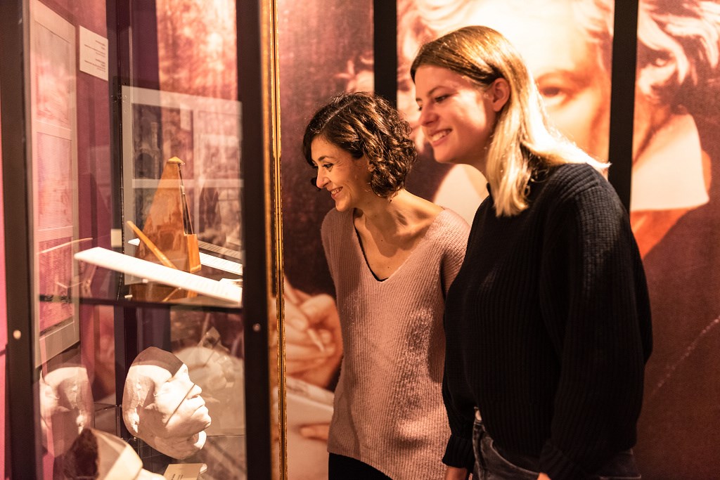 「粉絲想看到的,比如說貝多芬用過的鋼琴-這裡沒有,但這裡有很特別的貝多芬髮絲,是過世之後取下來用作保存,還有遺容做成的銅鑄面具,畫像以及海報等等。」張凱迪說,這裡也可以透過耳機聆聽紀念館播放的音樂,目前由維也納博物館管理。