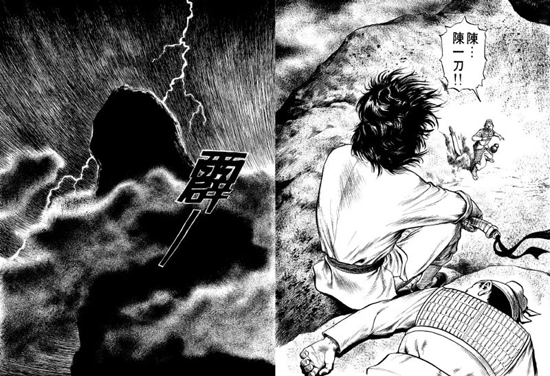 若與鄭問的古典世界比較,鄭問更追求畫面意境的烘托和渲染,如何將漫畫的線條賦予藝術的昇華。陳弘耀則將重點放在圖像敘事的流暢,如許多論者已經指出的,《一刀傳》的分鏡,幾乎是教科書等級,文字在他的作品中,往往只單純作為對話,很少用來交代情節,有時甚至連對話都捨去,任憑格與格之間,自然流轉、連結,串起了一則故事。