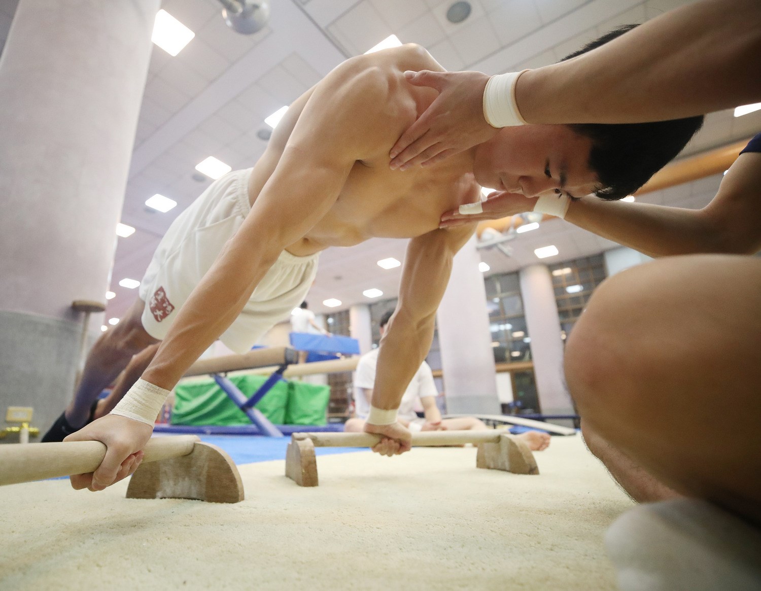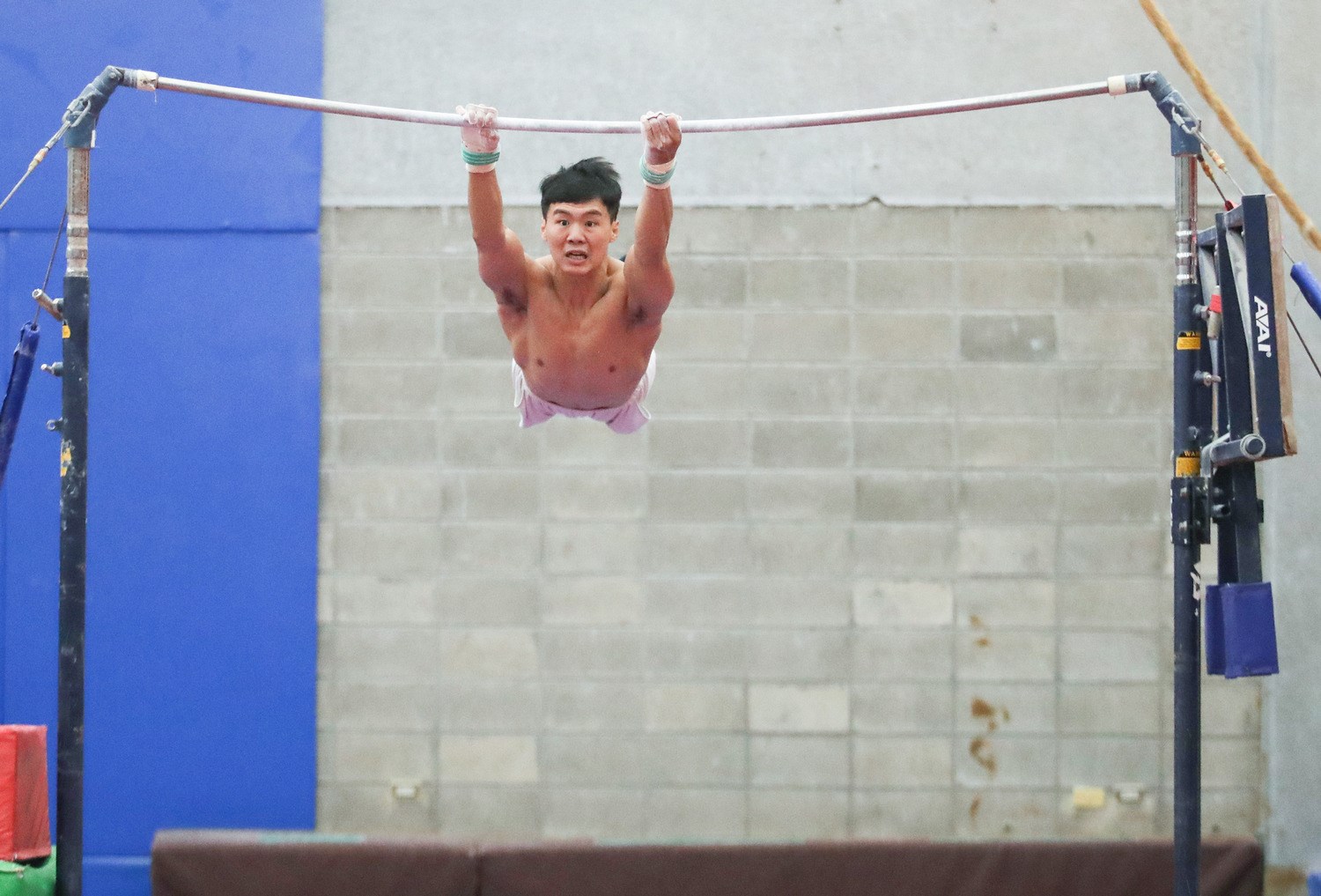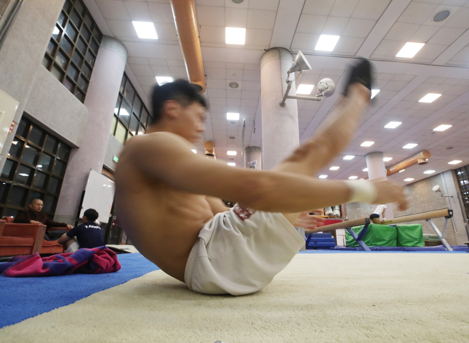 踏進體操館,看著24歲的少年,爬上槓、繞著槓、飛越槓。