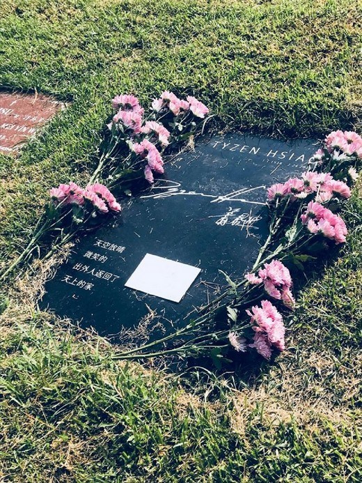 加州總是陽光燦爛,那天甚至有些襖熱,音樂會之前,到了老師長眠之處玫瑰崗紀念墓園看看老師。墓園宛如公園,黑色大理石墓碑鑲嵌地上,視野寬闊,上面有著老師的簽名,雋刻著「天空放晴/ 微笑的 / 出外人返回了/ 天上的家」,讀著讀著,時間彷彿靜止,有陣夏日微風拂來。