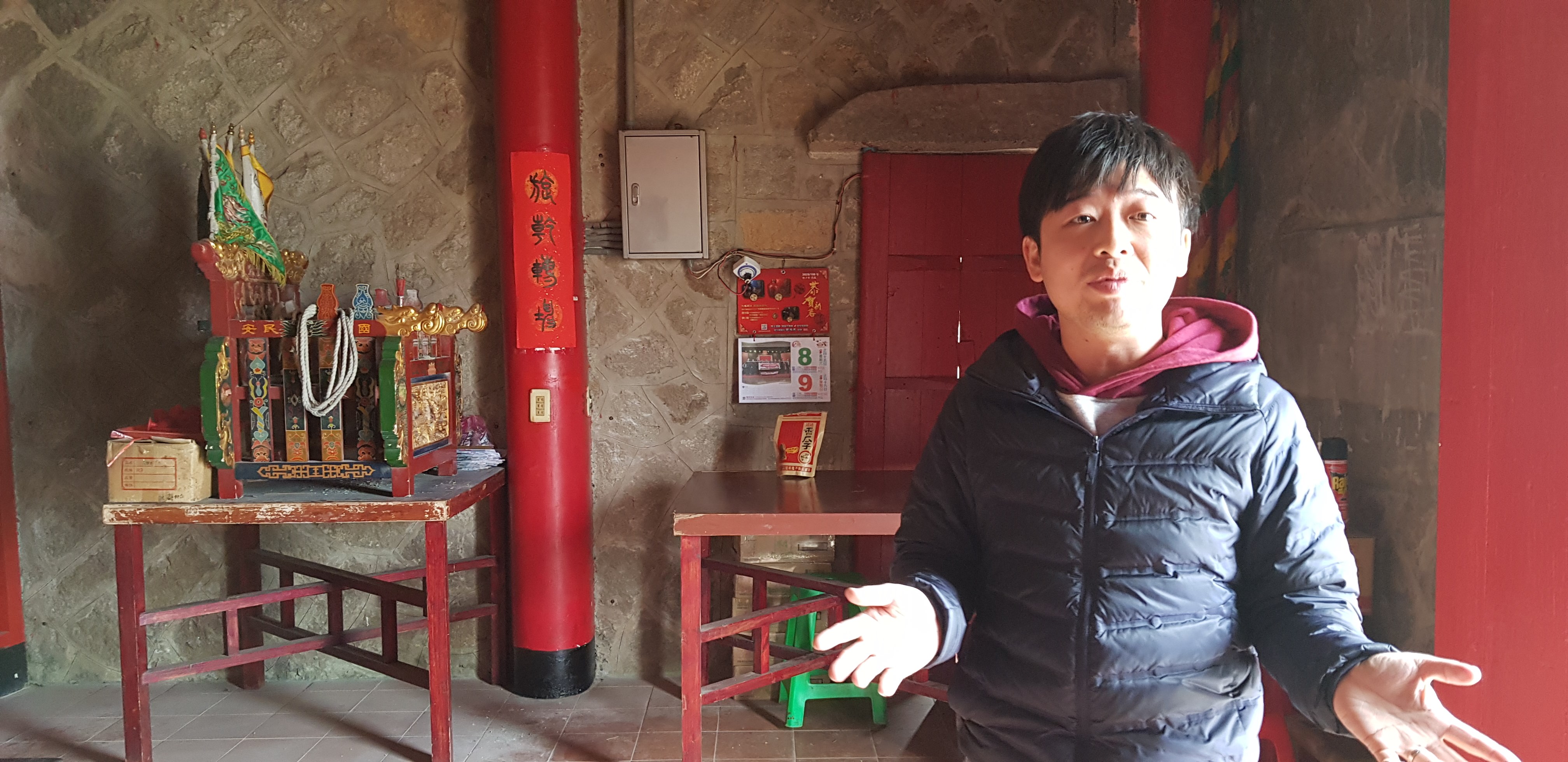 採訪當天,一下飛機先是抵達北竿芹壁村,大清早的,遠方就傳來鞭炮聲。當地人說,農曆正月近乎一整個月,處處都可聽到鞭炮聲,鞭炮聲環繞的每間廟宇,也著自己的獨特文化。