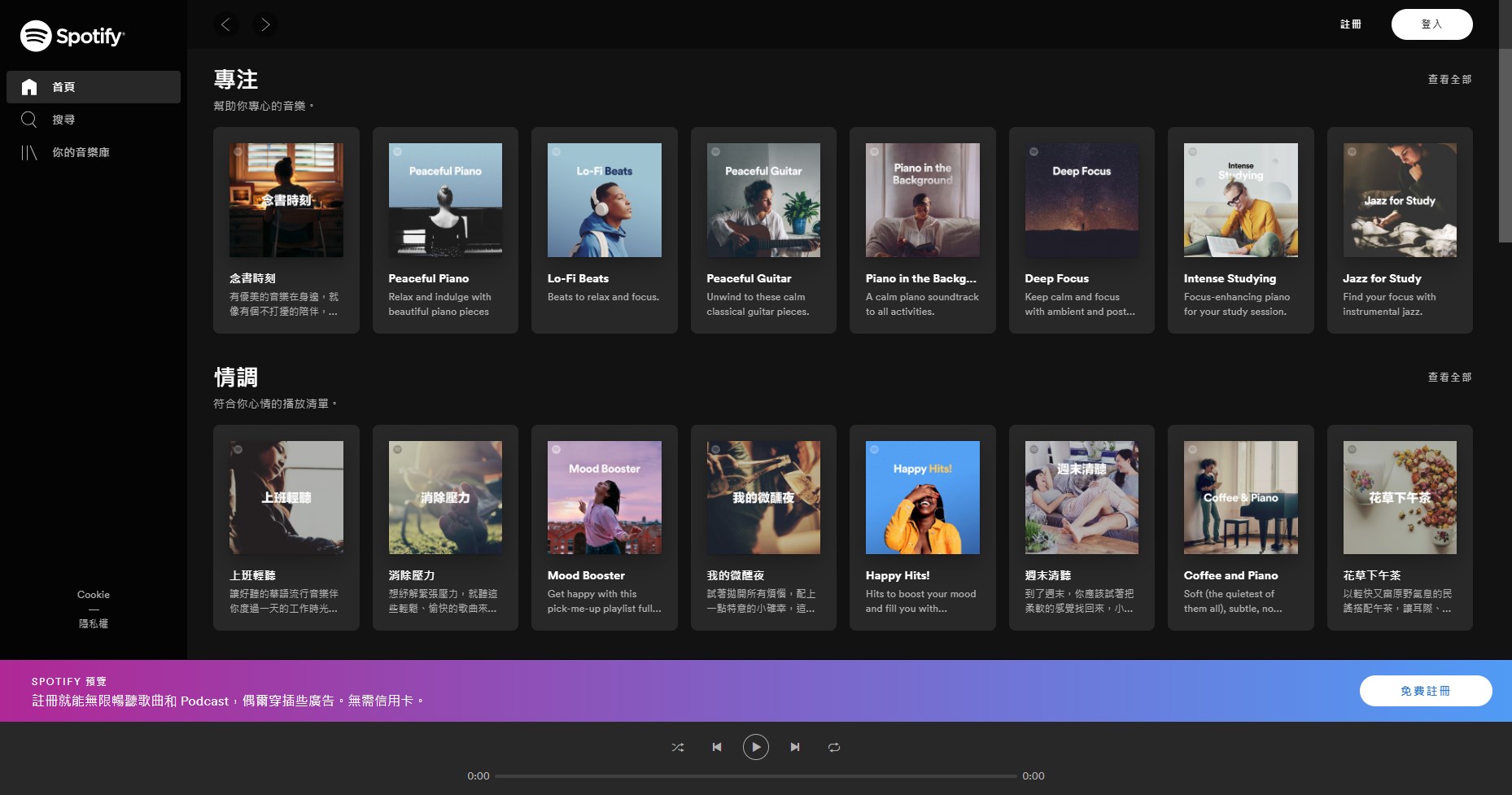 目前世界上最大的音樂串流服務平台Spotify,創立在2006年,Spotify打出類似免費增值(Freemium)的模式,能夠免費的使用平台服務,但是要有高音質歌曲、無廣告的聆聽體驗,則是需要付費,目前每月個人月費新台幣149元,能夠給6人所使用的家庭方案則為每月240元,這樣的價格,以及所擁有的音樂資源,讓許多音樂重度、成癮的使用者完全無法拒絕。