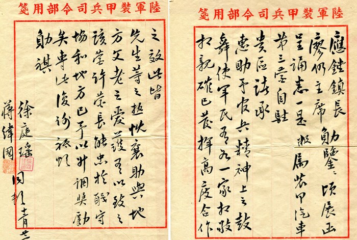 等媽媽把信拿出來,情報官傻眼了。最上面的一個信封印著『陸軍裝甲兵司令部』幾個火紅的大字,……底下還有幾封蔣緯國的信,接著是黃朝琴(台灣省臨時議會議長)、李萬居(台灣省臨時議會副議長)、黃啟瑞(台北市議會議長)……。沒有一封與『廖匪文毅通諜』的信。情報官不再搜索,掉頭帶走爸爸……。」