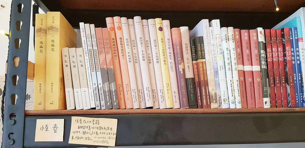 國境之南,書店裡最熱賣的不是新書,而是與恆春有關的地方誌等文史書籍。木木認為,遊客到景點,多半會想帶走一件屬於當地獨特的東西,「書籍是很好認識這個地方發生什麼故事的管道。」