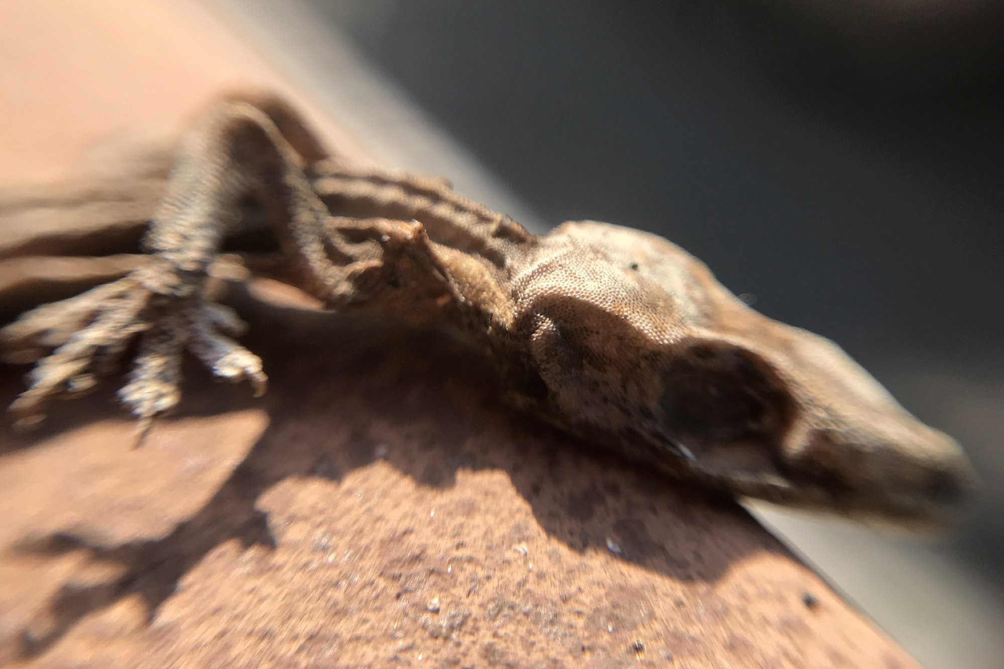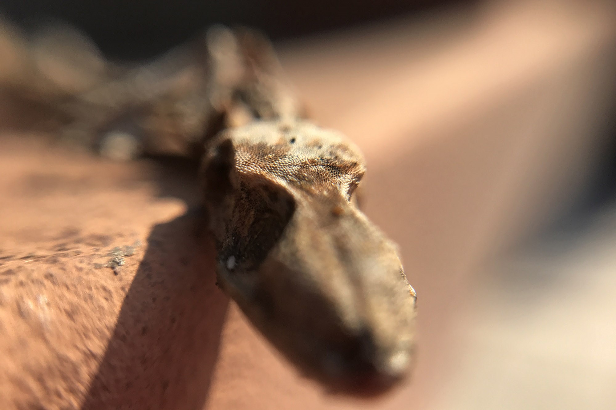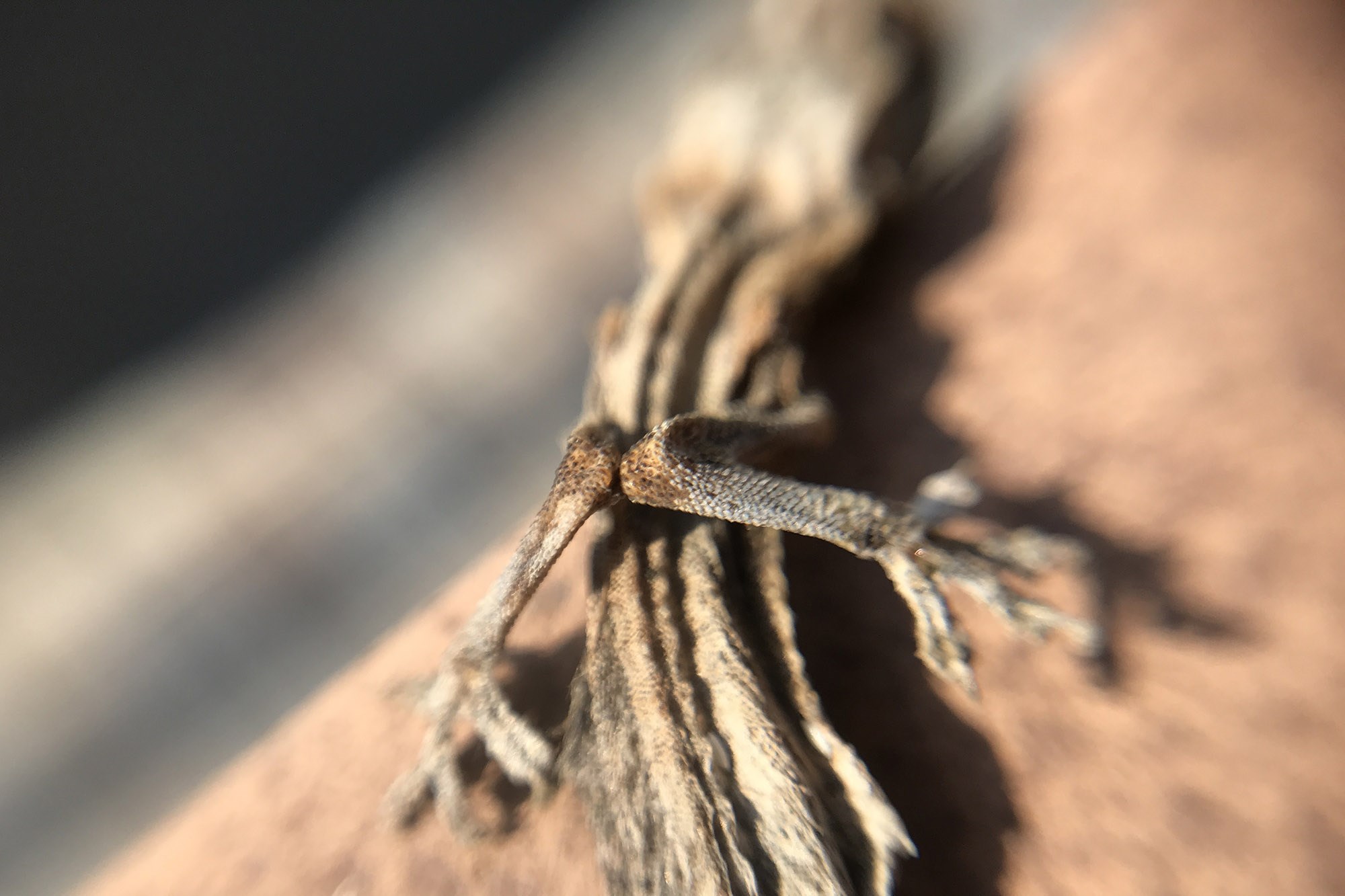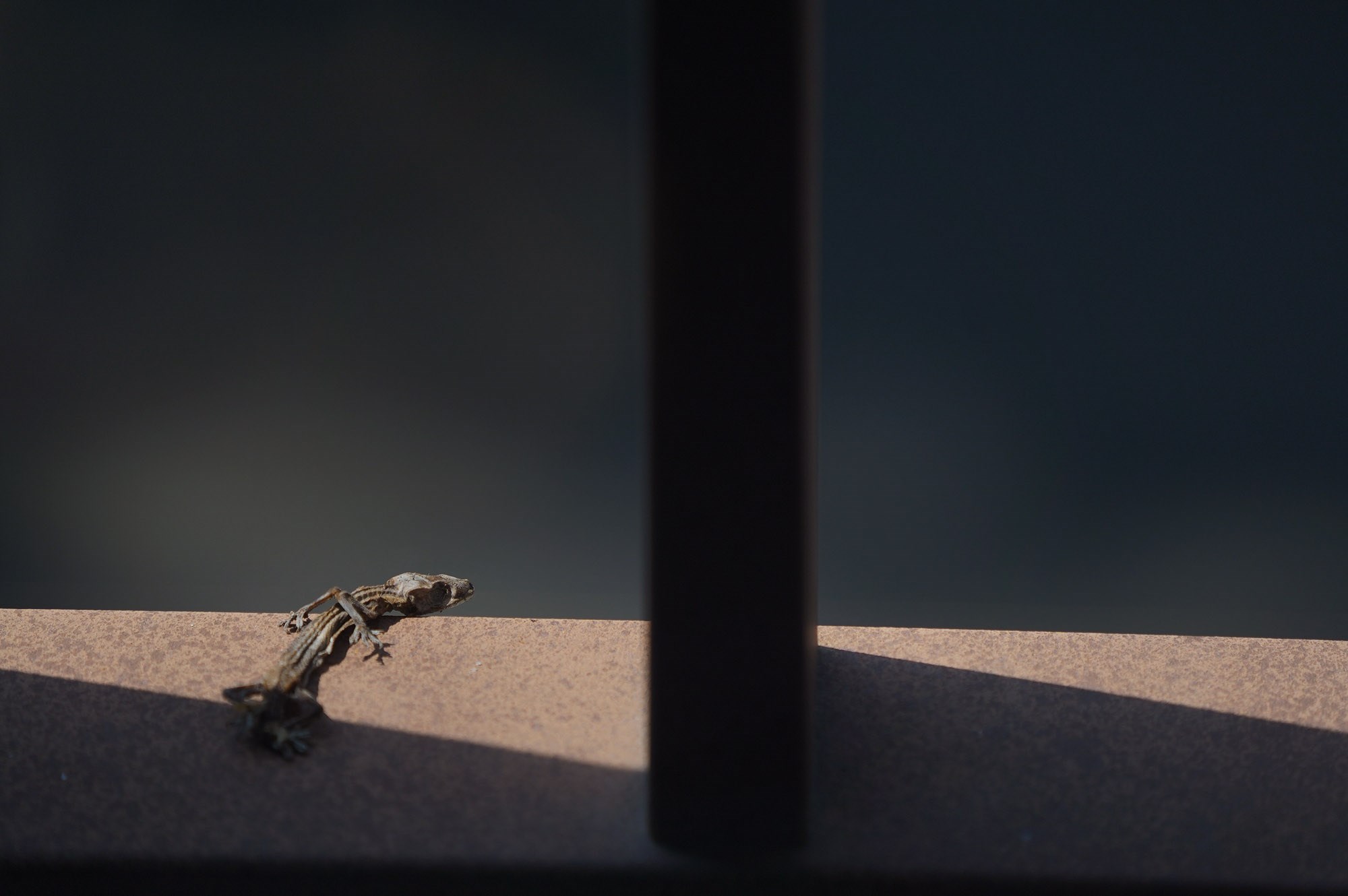 某日午後的陽台欄杆上驚見壁虎乾屍,和煦的陽光照射下,牠已默默變成了它,姿態依舊昂揚,彷彿只是時間定格而已。微距特寫拍攝,它並不是那麼讓人不舒服。
