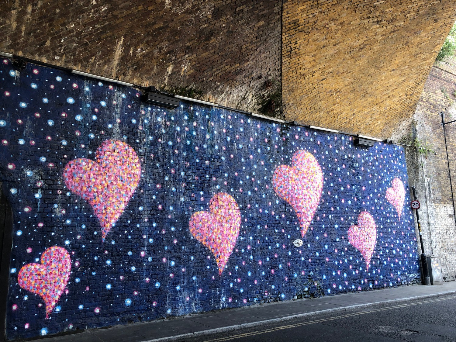 有些作品具有追思意義。像是波魯市場(Borough Market)就有一面愛心牆,由塗鴉藝術家Jimmy C繪製,紀念2017年6月倫敦橋恐攻事件罹難者。
