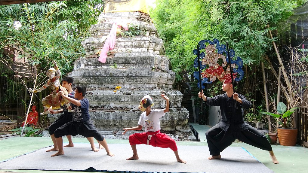 藝術之家(Baan Silapin)就位在這個社區裡,它像是台北的寶藏巖,一排水上房屋中有著幾間小小的、販賣藝術品的店家。週六的下午,在不是太寬闊的一間水上房屋內,擠滿了來自世界各地、口音各異的遊客。正式表演還沒開始,前方表演空地上,一群小小的孩子正聽著老師哨音,練習基本馬步,「一、二!一、二!」,可愛動作逗得不少遊客拿起相機猛拍。