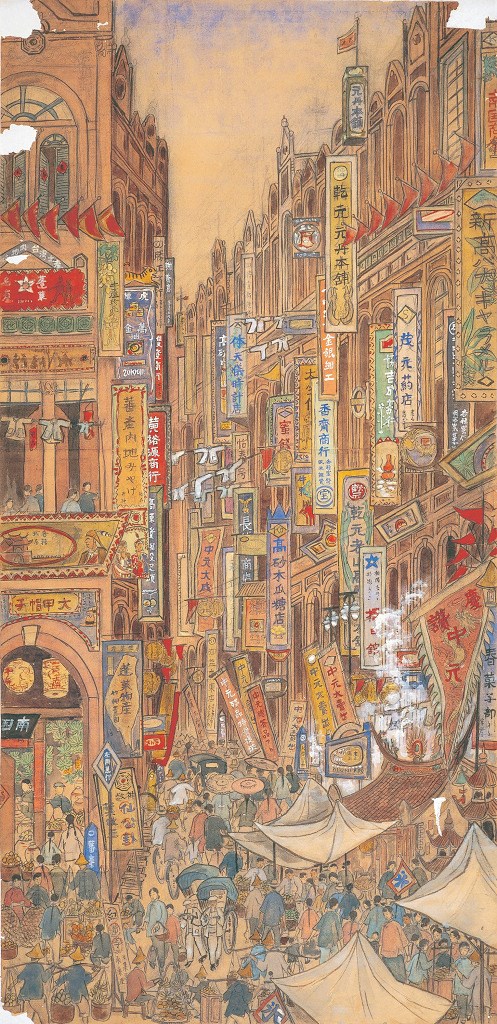 〈南街殷賑〉以台灣人視角出發,描繪生活節慶日常,1930年在「台展」中得獎,這幅國寶級畫作目前收藏在台北市立美術館,已是鎮館之寶。