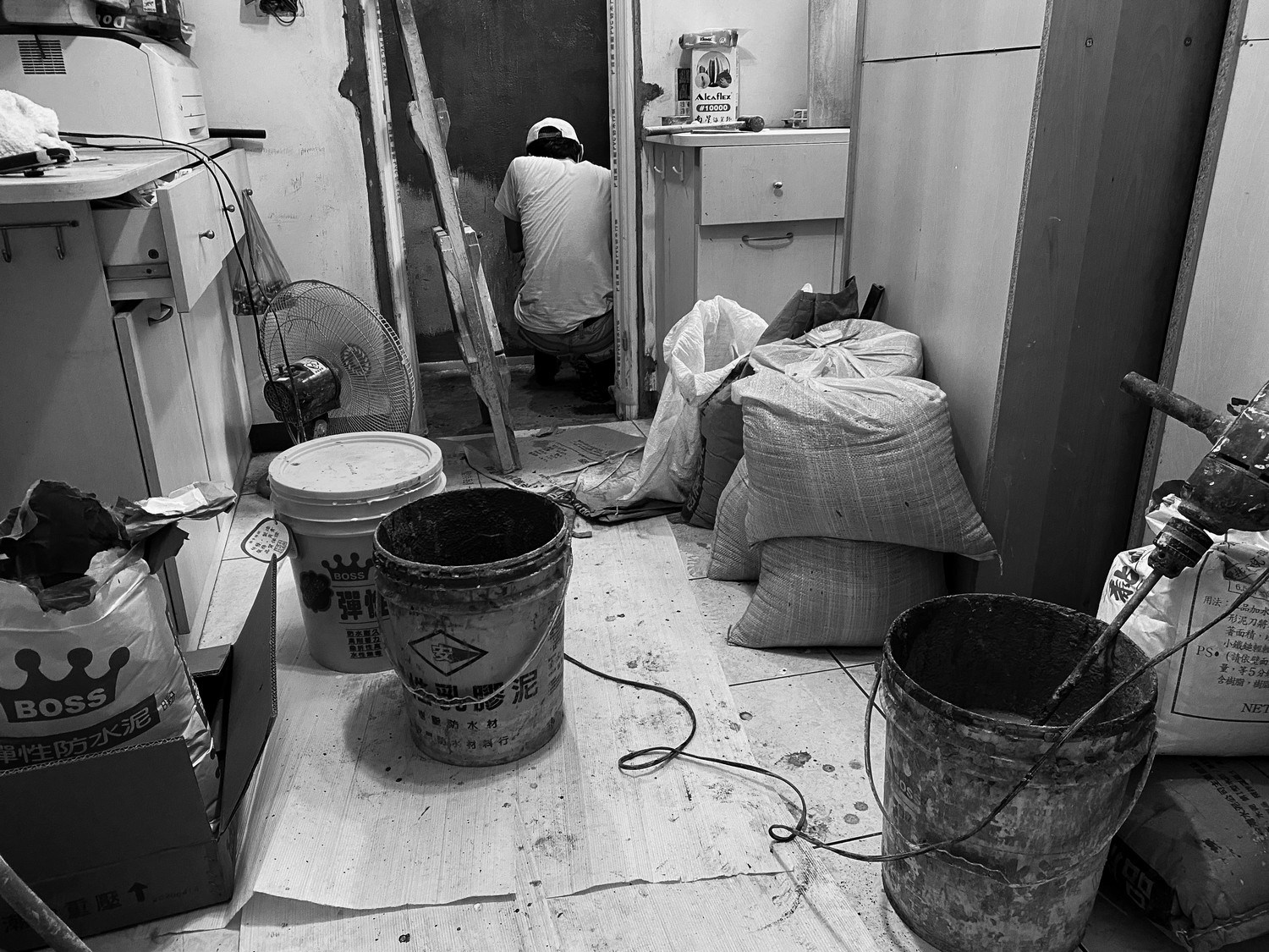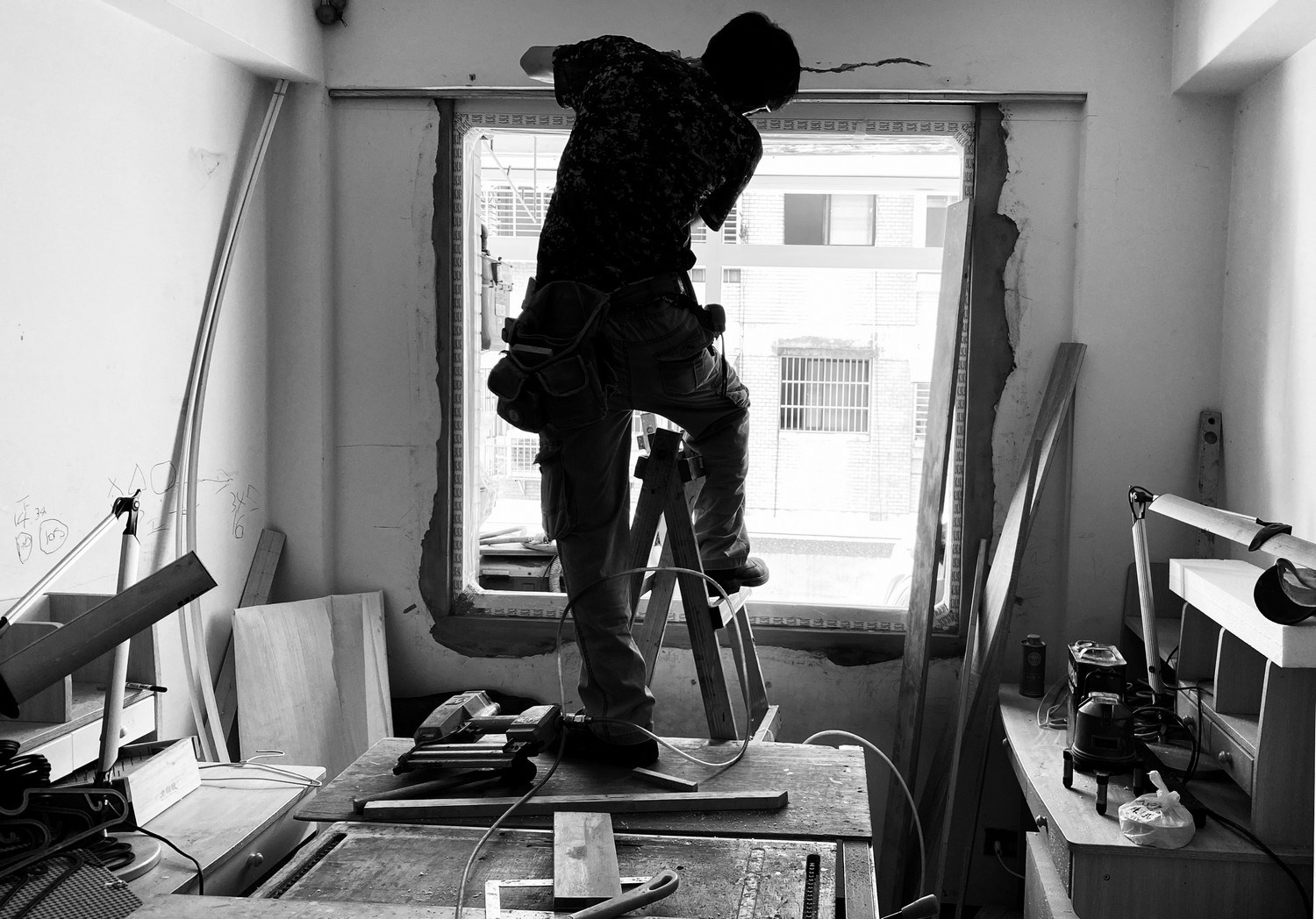 經過好些日子的討論規劃,動工日子到了。工班依序進場,師傅們彼此是老朋友也是合作夥伴,在旁看著他們施作,除了隨時可以掌握現況,那些要追加那些不用動,當場決定。有時中午一起吃便當聊聊天,看著師傅們流著汗水認真工作的背影,吸引我的目光,拿起手機做個紀錄。