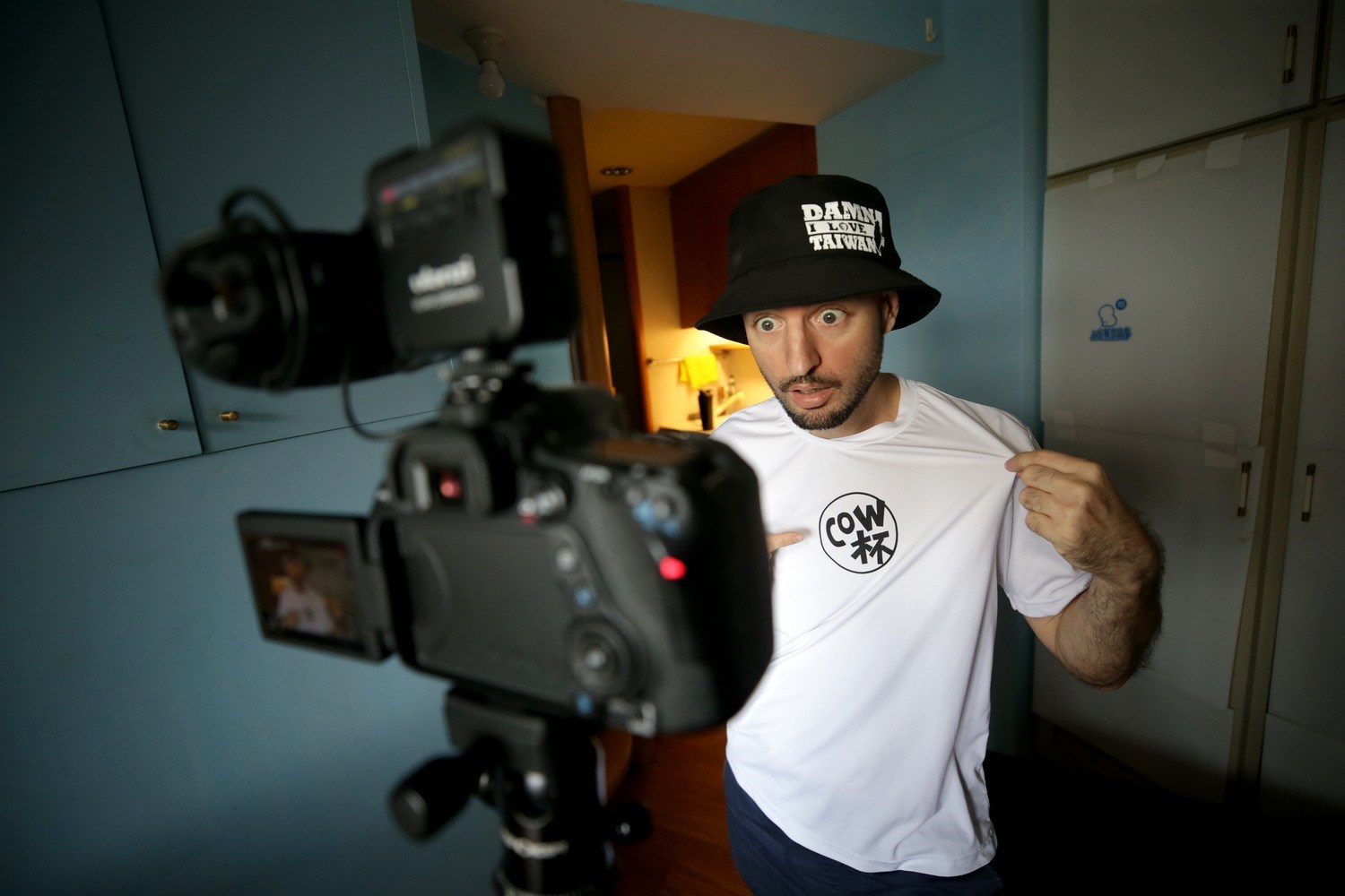 出了捷運站,遠遠就能看到一名男子穿著印有「Cow杯」2個大字的上衣,戴著寫有「DAMN!I LOVE TAIWAN」漁夫帽的男子。超台打扮卻配上一副五官深邃的西方面孔,黑素斯熱情地打招呼,一開口卻是字正腔圓的「你好」。