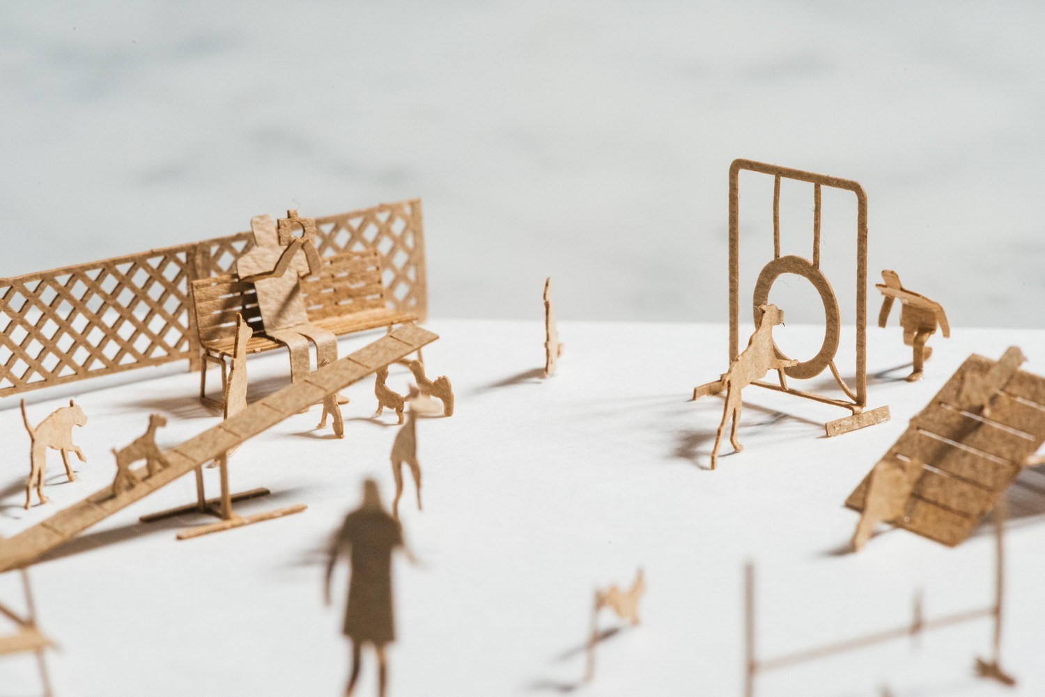 宛如擁有一支小叮噹的縮小手電筒,寺田尚樹把現實生活場景的人事物縮小到1/100的尺寸,從婚喪喜慶的重大人生場合,到每天生活可見的公園、運動場、小吃攤車等日常景象,全部變成可一手掌握的紙模型。紙模型之所以能原汁原味地呈現「縮小後的真實景致」,來自於寺田尚樹對模型設計中每一個元素尺寸的精準要求,因為一旦相對的大小不符合比例,就很容易導致畫面「失真」,這也和他20多年的建築專業息息相關!