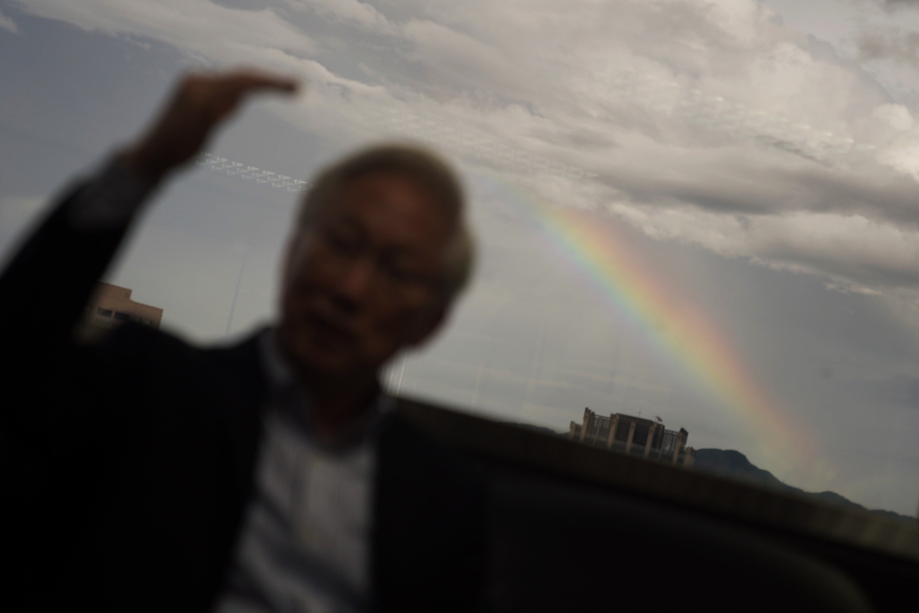 日前在專訪一位部會首長時,窗外乍現一道彩虹,為了不打擾受訪進度,並表達對受訪者的敬意,鏡頭還是朝著被攝者的方位按了幾張,但是這時的曝光值,我只在乎窗外的彩虹。