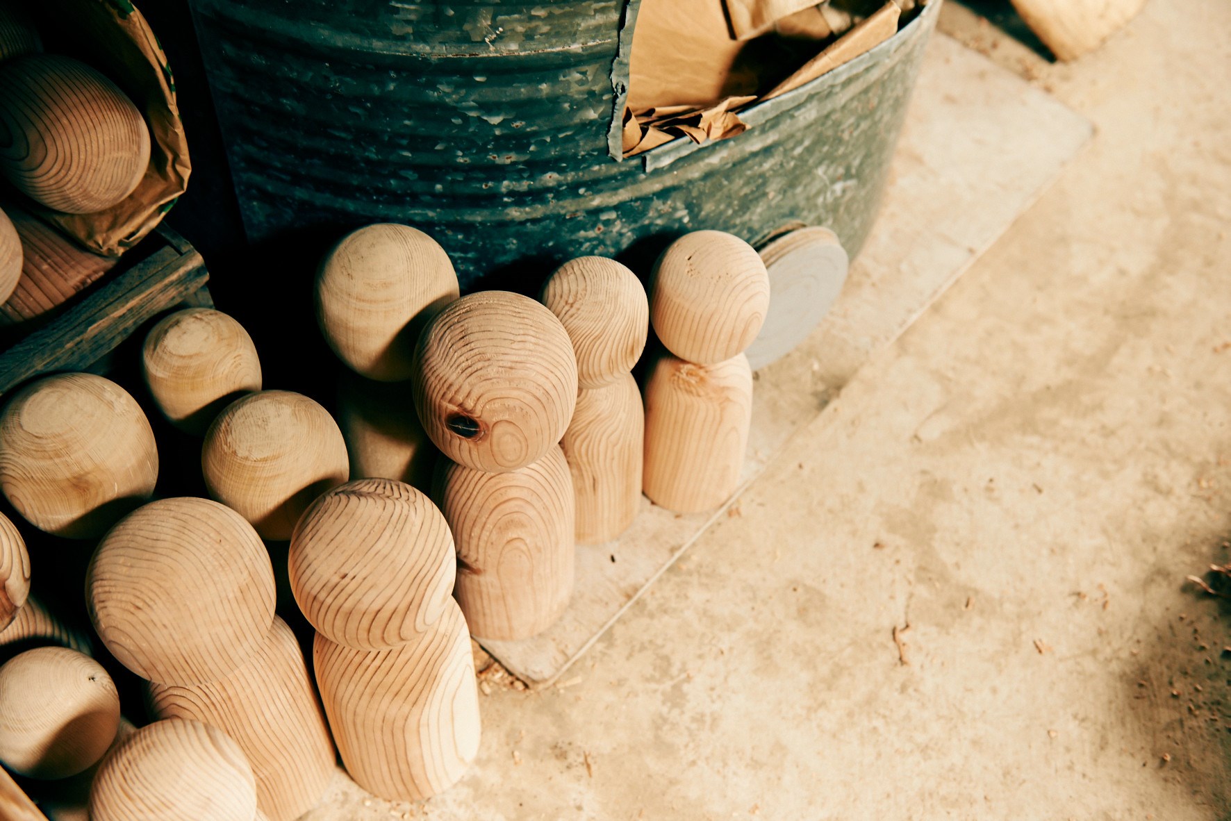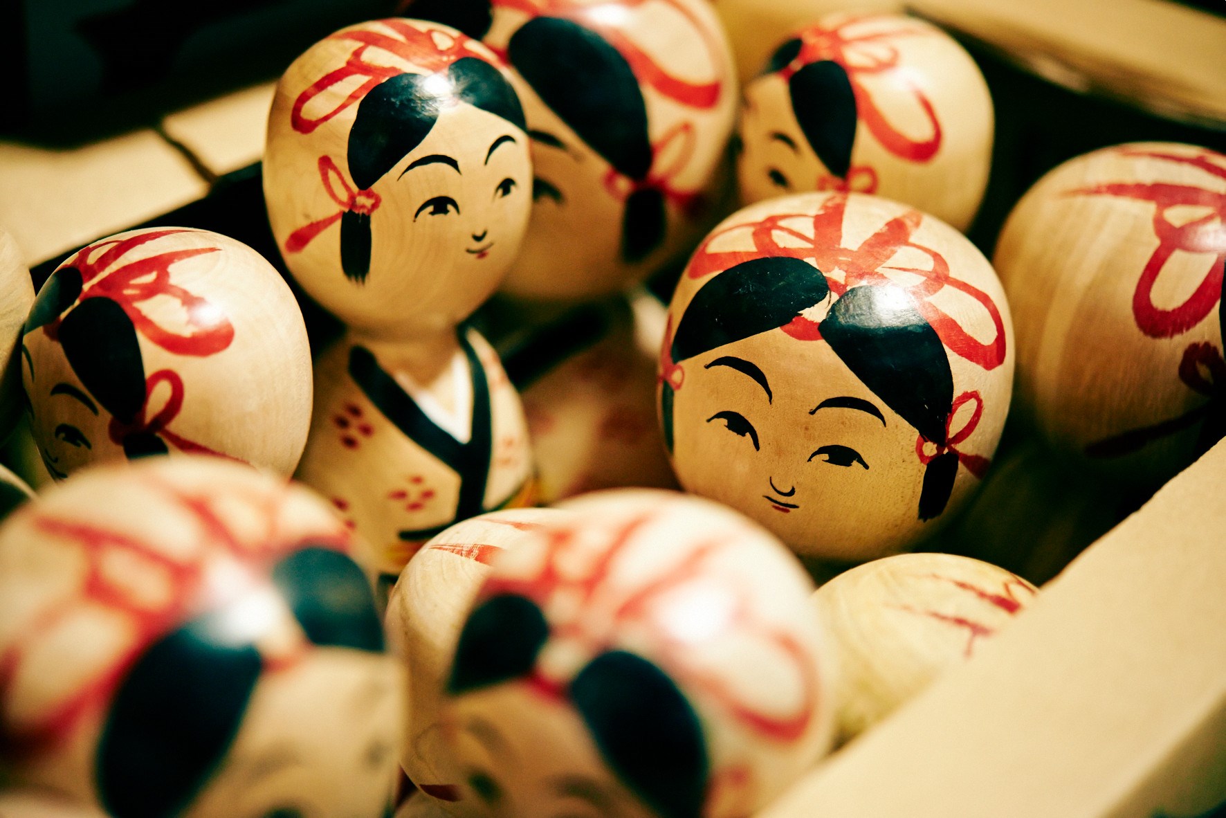 木頭材質的こけし人偶,有著柱狀身軀和圓球造型的頭部,看起來就像襁褓中的可愛嬰孩,從雕刻到上色皆由職人手工製作,隨著地區不同各自發展出不同的形象,而座落在秋田湯澤市木地山旁的小南三郎工房,則是屬於「木地山系」。人偶頭部有大片的前髮以及紅色放射狀的裝飾,淺淺的笑容與平整的短髮造型,讓人覺得親切十足。而一旁家屋堆著滿山的こけし,都是大師小南三郎的個人的練習或作品收藏,他說,「這裡的每個こけし都是我親手誕生的孩子。」從半世紀前開始自學,他對こけし投注的深厚情感,造就了每尊人偶迷人可愛的模樣。