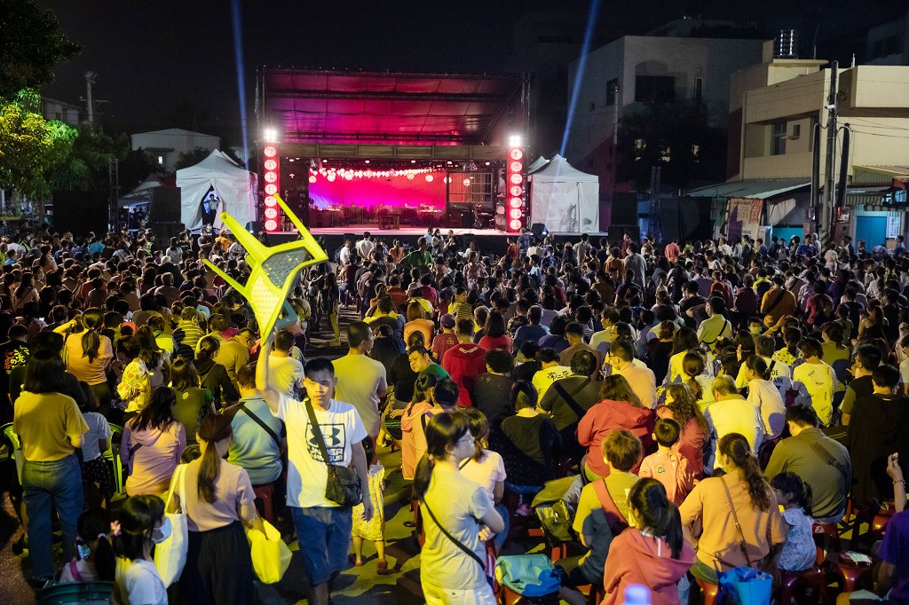 傍晚天色未暗,台南歸仁仁壽宮廟前的大廣場已經排好椅子,不多時人已坐滿,一圈一圈人潮是來自台南各地的民眾,扶老攜幼、或站或坐,一對年輕夫妻就住附近,先生說很早以前歸仁這邊的粉絲專頁「我在歸仁的大小事」就已全力放送,「常來仁壽宮拜拜,但看戲是第一次。」