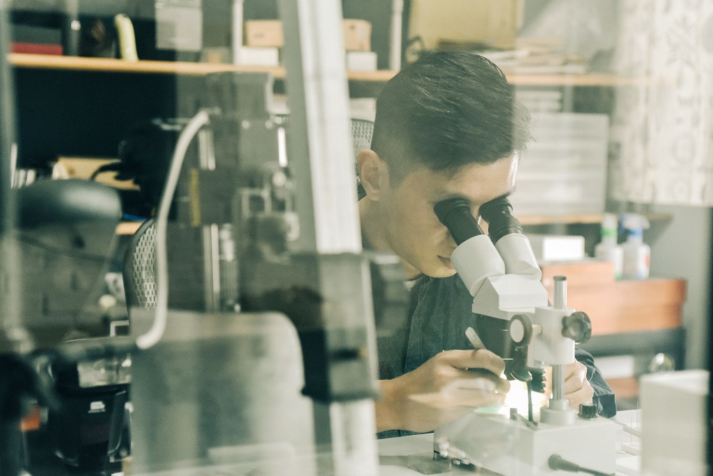 從採集、文獻調查、標本製作到超微距攝影,每個步驟王惟正都細細摸索,希望能將資訊蒐集做得更完備。他舉例,當他採集到大小約0.3公分的吉丁蟲,就會開始進行物種分類。因為長相極為相似,僅能透過顯微鏡觀察生殖特徵進行分辨;在製作標本時,王惟正習慣使用0.1公釐的微針,將蟲身、觸角調整到最完美的角度,若是力道沒抓穩,蟲身就會損傷,相當挑戰視力和專注度。