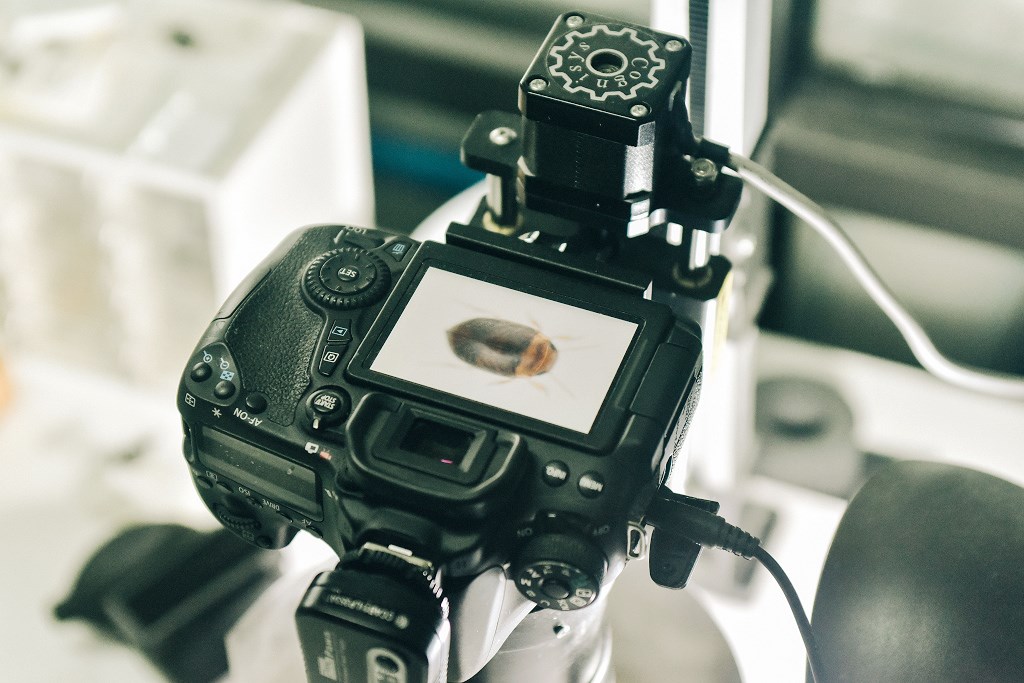 吉丁蟲微小,拍攝時必須針對不同深度個別拍攝後再進行疊合。為求將細節精準表現,書籍裡的正反蟲身、生殖器和特徵等,每隻昆蟲圖片都運用了至少150至180張進行影像疊合。整本書是由10萬張照片累積的成果,一點一點掃描集結再合成,得來不易。