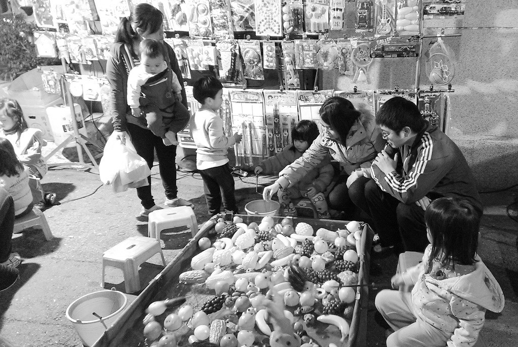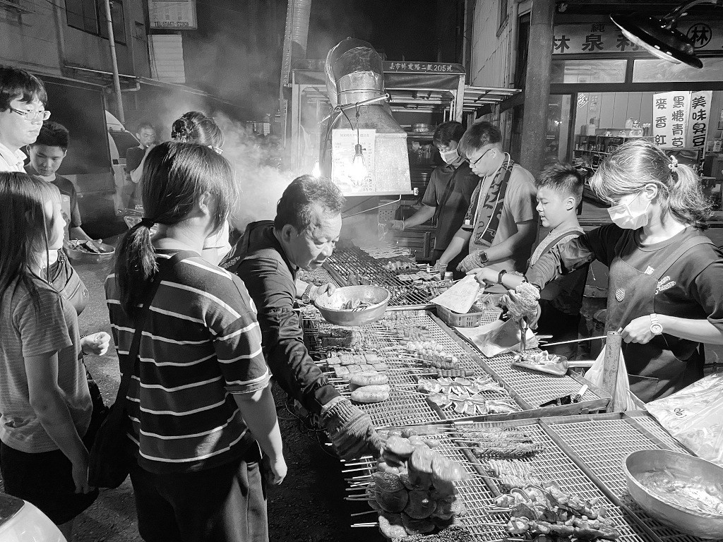 平常白天車來人往的一般道路,如果不說外地人很難知道,原來這裡晚上有夜市,而且只有星期一晚上營業。每次來擺攤的人不一定,吃的、喝的、玩的、穿的樣樣都有,釣魚、打彈珠、射飛鏢等遊戲,擺滿整面牆等你挑戰;牛排、蚵仔煎、燒烤、地瓜球、旗魚黑輪......吸引味蕾,配著熟悉的台語,逛夜市成了另一種人生享受。
