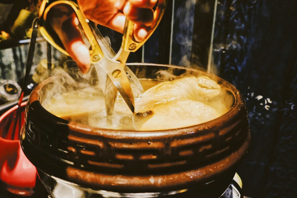 半席有什麼東西呢?「最重要的就是一鍋湯、四個熱炒,一鍋湯等於是兩樣菜,加上熱炒就是六樣菜,熱炒都是烤的啦、炸的啦。」曾品滄說畢竟要下酒,快速、重口的食物是酒客最愛。「鍋就變成一個螺肉罐頭打開,把一些乾魷魚、蒜放進去,一鍋湯就出來了,就是魷魚螺肉蒜;還有雞仔瓜鍋也是,那時很流行日光牌的花瓜罐頭,打開倒進去跟雞肉一起煮,就是一鍋湯了。」
