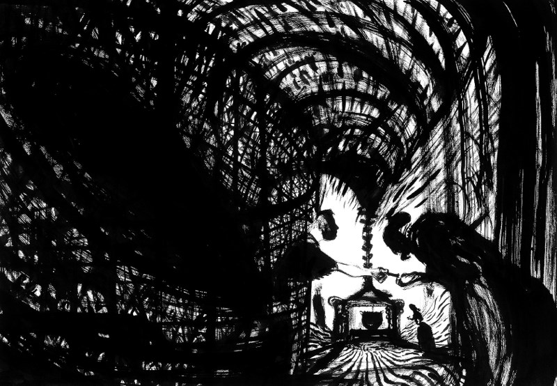 漢賽爾在牢籠中,變成饑荒中最飽足也最恐懼的小孩:每天與其他小孩的死屍為伍,手掌心裡緊握著另一個孩子的手指骨,作為保命的精神寄託。生存與死亡,只存在一線之間。葛麗特則在老婆婆的奴役下,變得沉默而幹練,等待著機會,改變姐弟共同的命運。