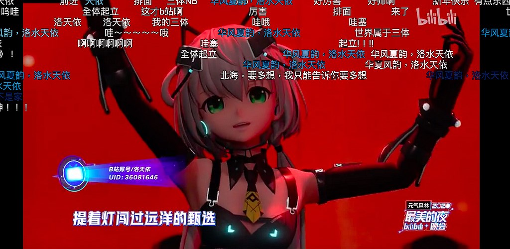 在這場名為「2020最美的夜」跨年晚會裡,有虛擬偶像「洛天依」華麗開唱,也有動用百人的高水準交響樂團演奏; 有郎朗和崔健這樣的知名大咖,也有B站自己的「UP主」(上傳影片者、投稿者)表演。最讓人驚訝的是,晚會還可以公然高唱日文動漫主題曲,這固然要歸功於過去兩年中日關係不差,但若在中國的電視頻道,這仍是不可能出現的景象。