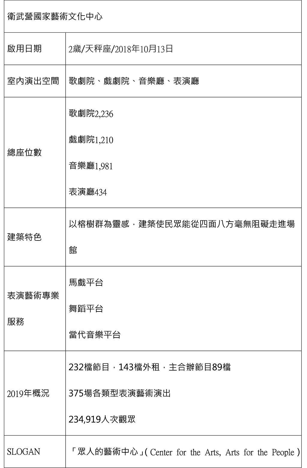 當然「眾人」,自然也包含了過往不是那麼容易親臨藝文空間的人。陳巧儀提到這幾年在文化平權的目標下,衛武營也針對不同族群設計節目及推廣活動,期望眾人能在衛武營找到各自自在、放鬆的方式欣賞節目。明年計畫推出針對身心障礙族群的歌唱與戲劇工作坊,搭配已起步的口述影像、觸摸導覽以及與手語協會合作的演前導聆等,都是持續努力進步的方向。至於衛武營附近有著全台第二座清真寺,原是為了軍方遷居來台的穆斯林所建,現今則多以東南亞移工為主。如何藉由東南亞藝術「敦親睦鄰」,並觸及移工、移民團體,也會是未來的計畫之一。