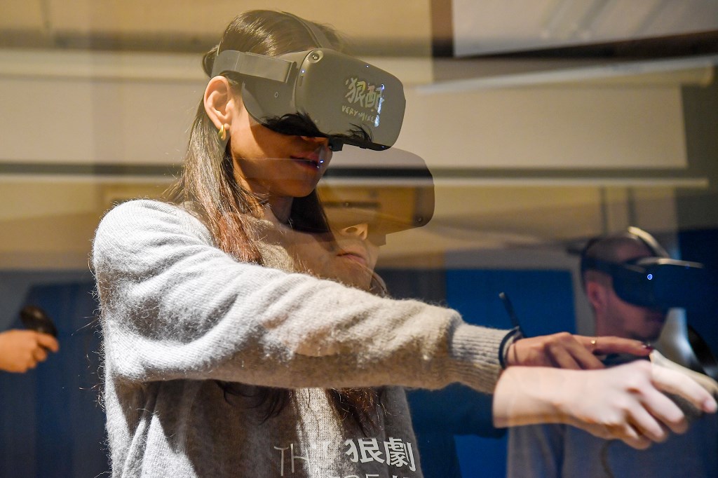 拿下虛擬實境(virtual reality, VR)的頭戴顯示器,周東彥額頭上有一圈淺紅的印痕,其中有一塊特別明顯。周東彥摸著摸著解釋,因為頭顯必須和頭形緊密嵌合,才不會掉落或失重。