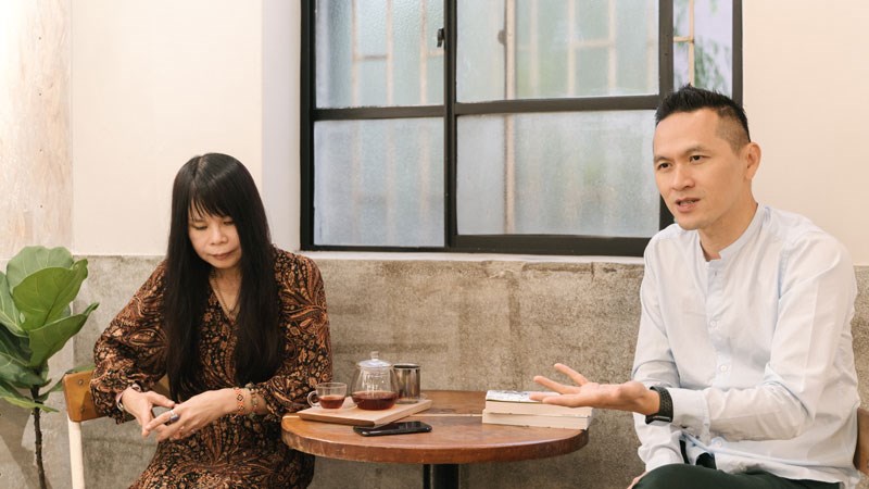 咖啡館裡,作家陳思宏見到眾人,一臉驚訝問道:「我沒遲到吧?為什麼大家都到了,是發生什麼事?」座位上,編採團隊旁已坐定的作家鍾文音露出親切微笑:「因為要迎接你啊。」