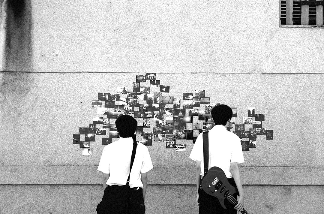 黃思蜜提到「第一次」的慘與爽,至今仍刻骨銘心,「記得當時的封面是跟讀者募集高中時期的照片,然後貼滿整面牆上,再請兩個人穿著高中生制服,凝望著滿牆的照片……,書衣的印刷用紙挑了單光白牛皮紙去印,能透出底下的照片。」