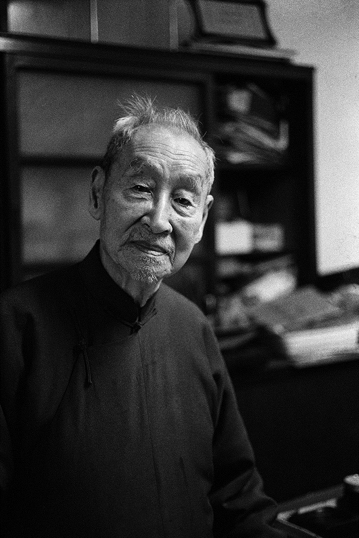 拍這張照片時,郎靜山104歲,莊靈57歲,郎靜山雖為病所苦,面對從小看到大的莊靈,依舊將他當小孩看待,閒話家常,瑣瑣碎碎,老人的眼光閃耀著對人世間的靈性觀照,以及看亂世浮生人情世故的慈悲情懷。