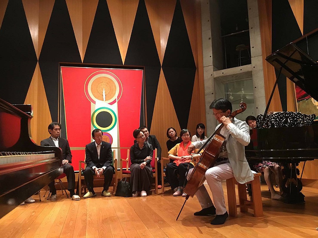 哪一場音樂會這麼神奇?三船文彰在台灣即與謝長廷熟識,謝長廷擔任駐日大使之後,就跟三船文彰說,他任內四年一定要踏遍日本43個縣,最後一站就是岡山縣-三船文彰定居的地方。