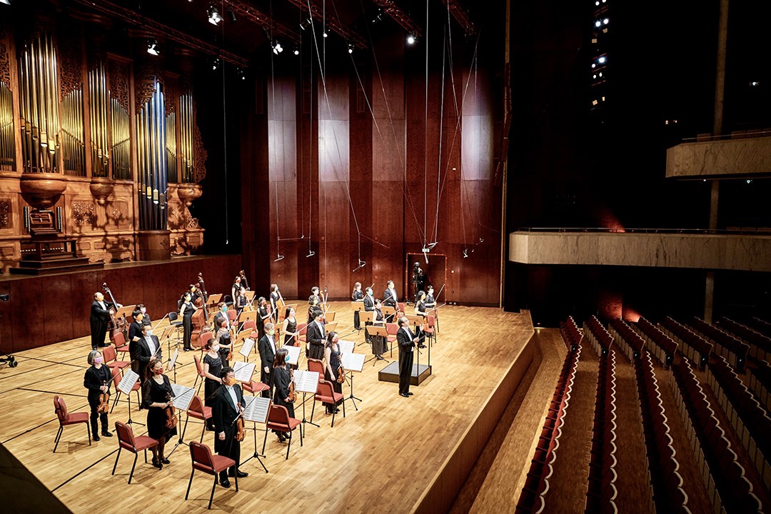 為了鼓勵表演藝術界重新回到舞台,也為了讓之後的表演藝術團隊有前例可循,NSO國家交響樂團彷彿在為站上舞台書寫SOP計畫,從動線到上下場,從快篩到口罩,從排練演出的安排到間隔座的思索,莫不以上台的表演者、台下的觀眾以及所有場館工作人員為主要考量,用更多的準備隔絕病毒。