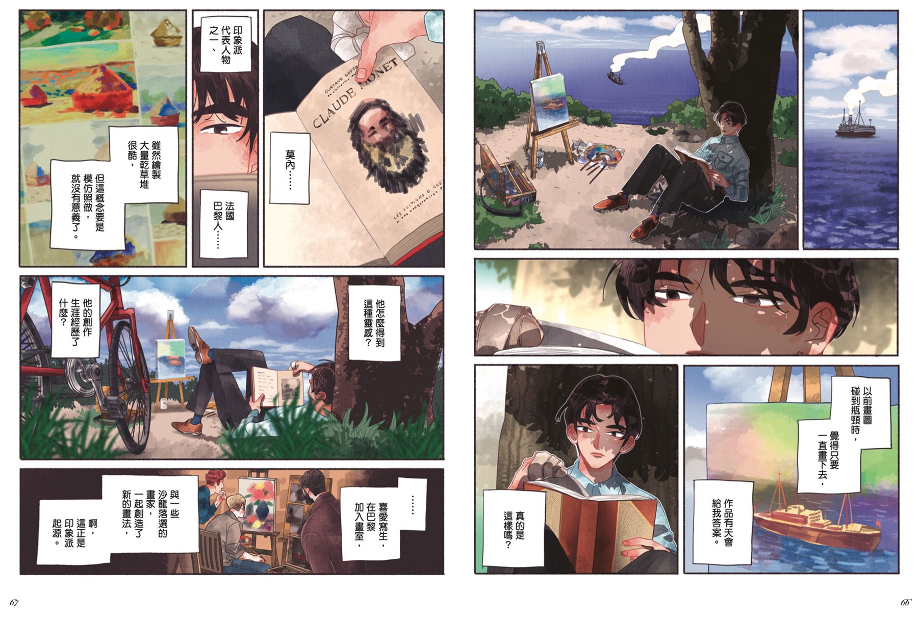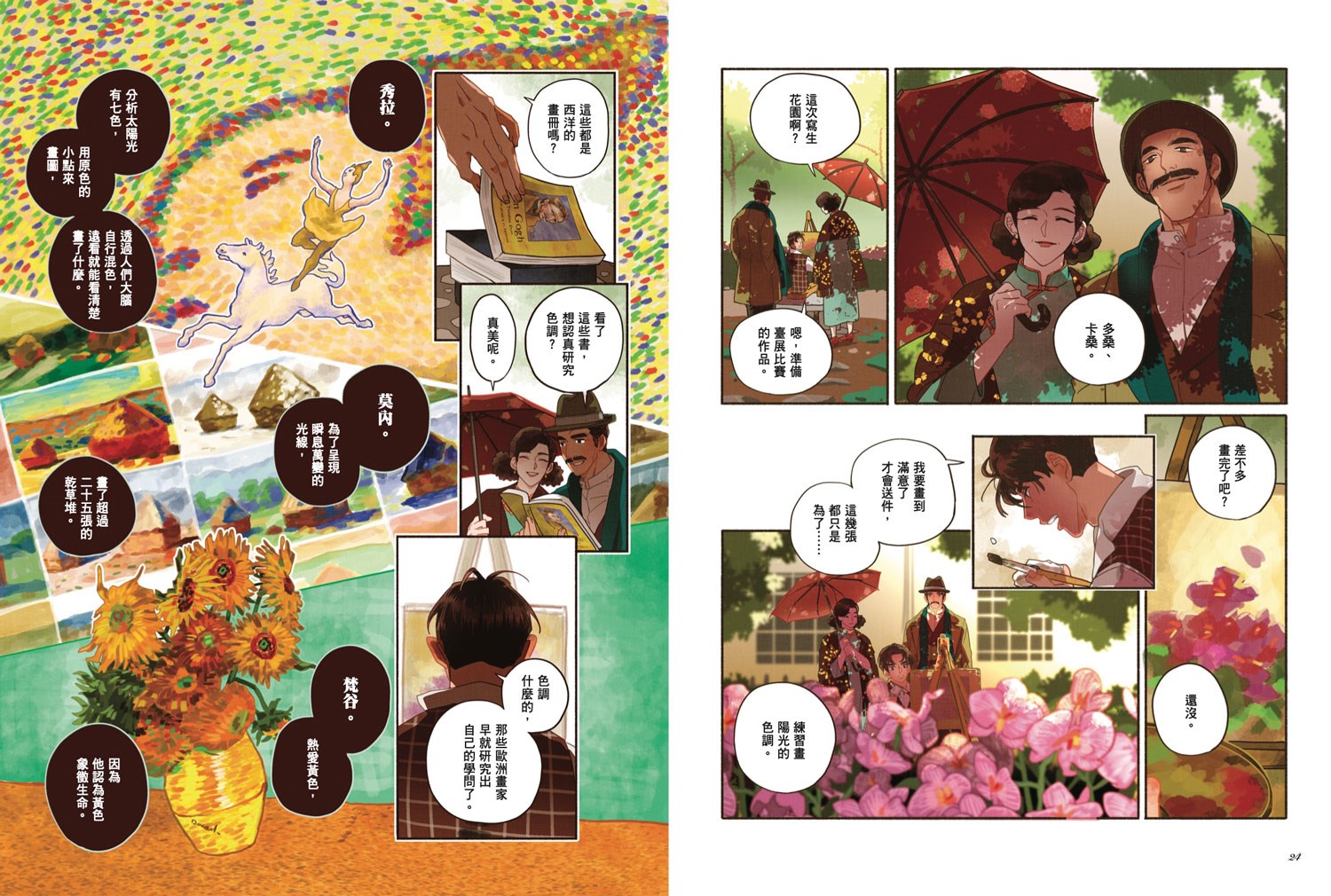 而與國美館合作《無價之畫》的漫畫家HOM則提到,創作前她習慣先建立場景資料庫,比如捷運、咖啡廳都會有相關資料夾。但在創作這部作品時,她發現相關資料很少,包括當時台灣的街景、港口等,光是找尋這些素材就要花費許多時間。「感謝當時的CCC編輯賴國峰、蓋亞編輯李明潔幫我找了很多資料。印象最深的是,我們拜訪了楊三郎美術館館長、楊三郎公子楊星朗先生,他不遺餘力提供資料給我們,有些很罕見,像楊三郎搭船去法國的船票、到羅浮宮寫生的證明,也參觀了楊三郎的畫室。他們都在取材上幫了我很大的忙。」