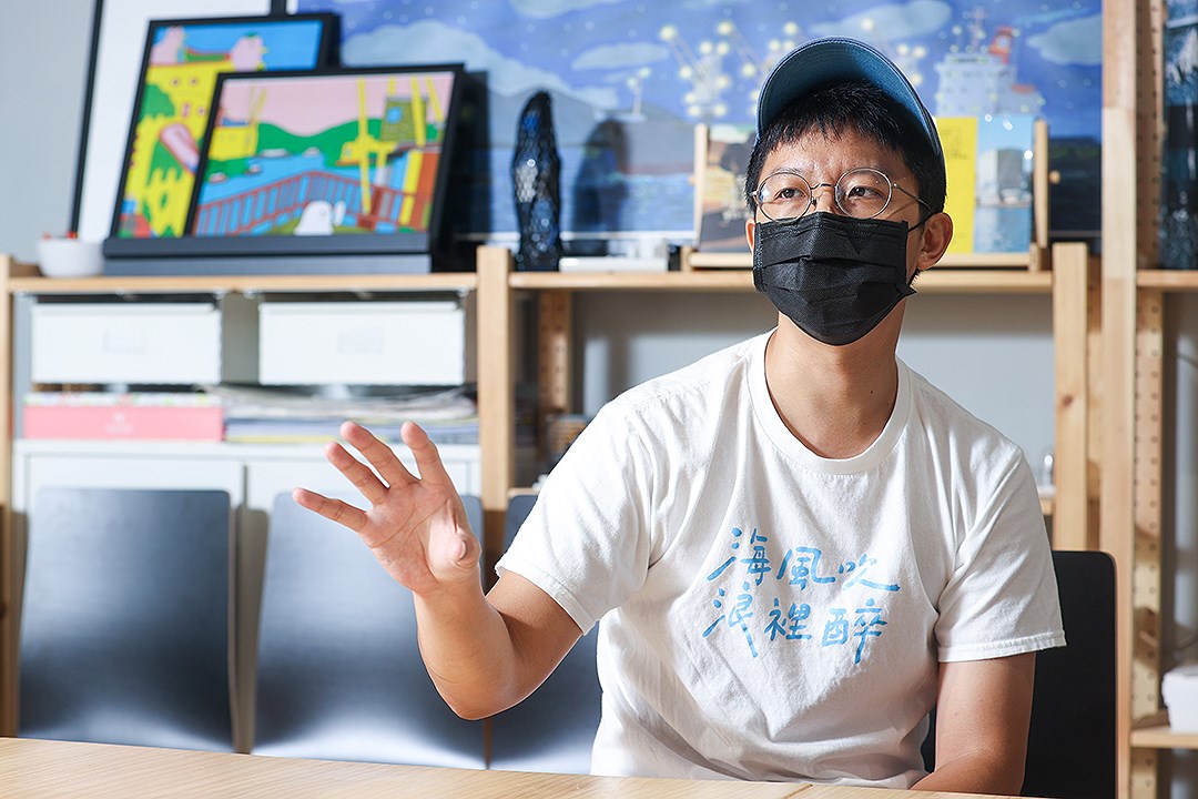 來自不靠海的新北市五股,海洋像是林書豪多年的鄉愁,無以名狀的熟悉,自此選擇和一群夥伴在正濱漁港成立星濱山共創工作室,自籌自辦大型藝術祭的地域策展,與來自各地青年夥伴共同努力下,希望創造百年漁港的文化創意復興。