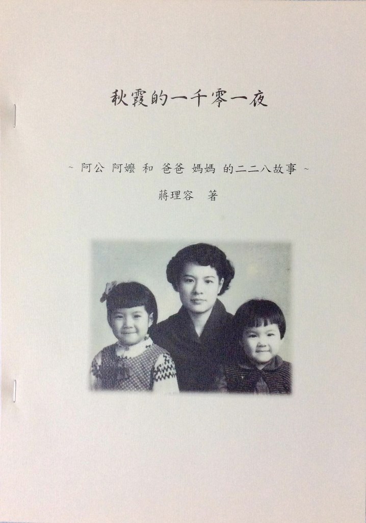 這份20年的母親生命筆記,加上祖父日記與相關資料,蔣理容在罹癌,結束療程之後寫下「秋霞的一千零一夜:多桑蔣渭川的二二八」,以小說形式從蔣渭川媳婦秋霞的視角,回望那個充滿苦難與動盪的時代。