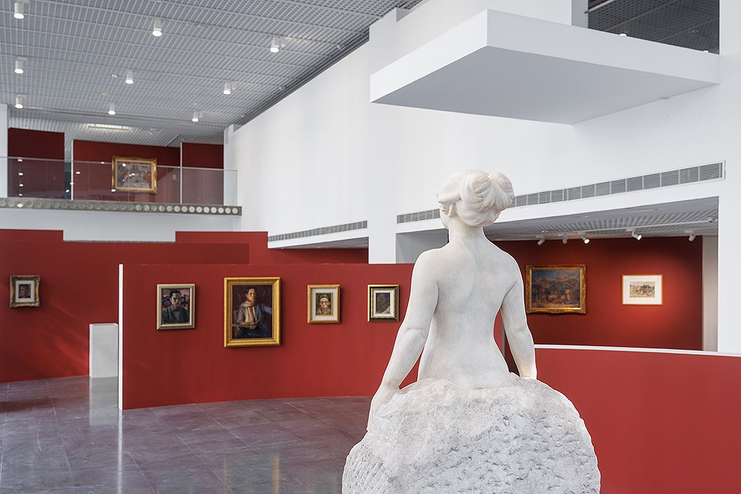 例如展場中面向《甘露水》並排陳列的5幅畫作,分別是劉錦堂、李梅樹、廖繼春、洪瑞麟及陳澄波的《自畫像》。這些畫家們和赴日求學、並以雕塑打響名號的黃土水一樣,都曾留學日本,並在藝術領域發光發熱,為台灣的美術文化運動開啟黎明天光。《甘露水》和不同的《自畫像》遙遙相望,以意義而言,真正還原了當年時空。