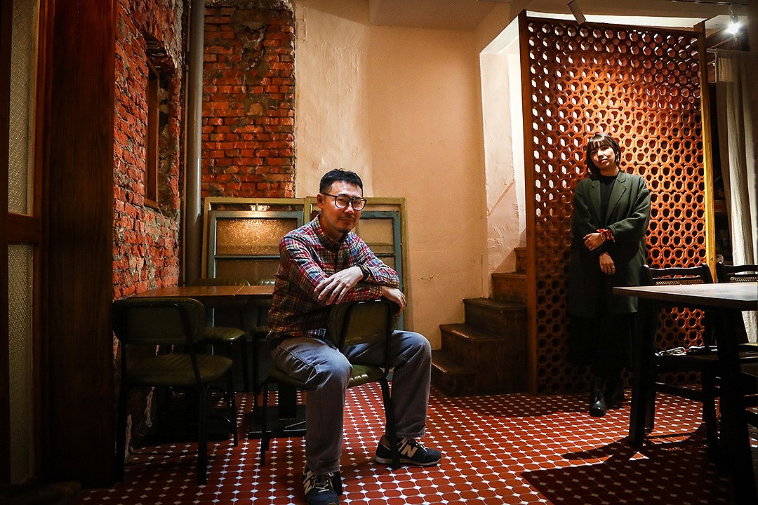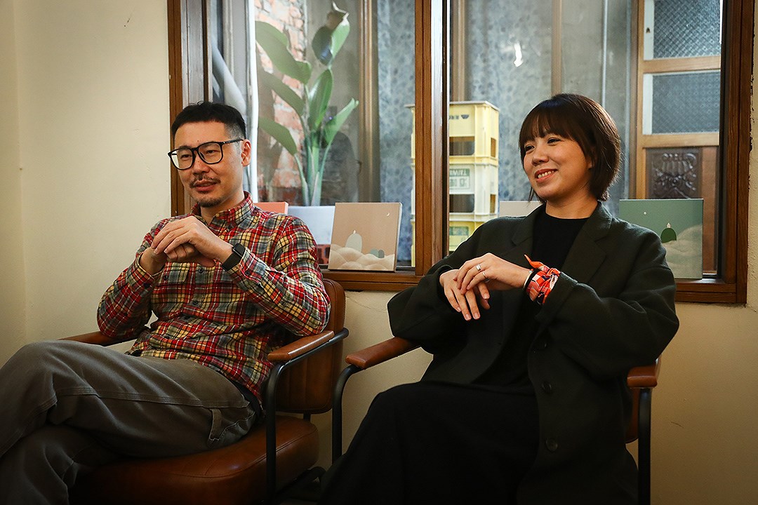 「他喔!我還沒大學畢業就認識他了,他就跟我說不要進入這一行啊!」台劇《茶金》美術設計尤稚儀看著坐在一旁的美術指導賴勇坤說。