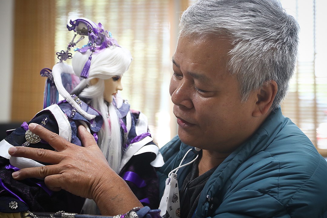 丁振清說,把每一尊戲偶都當成老朋友的心情,才能讓布袋戲的路走得更遠。