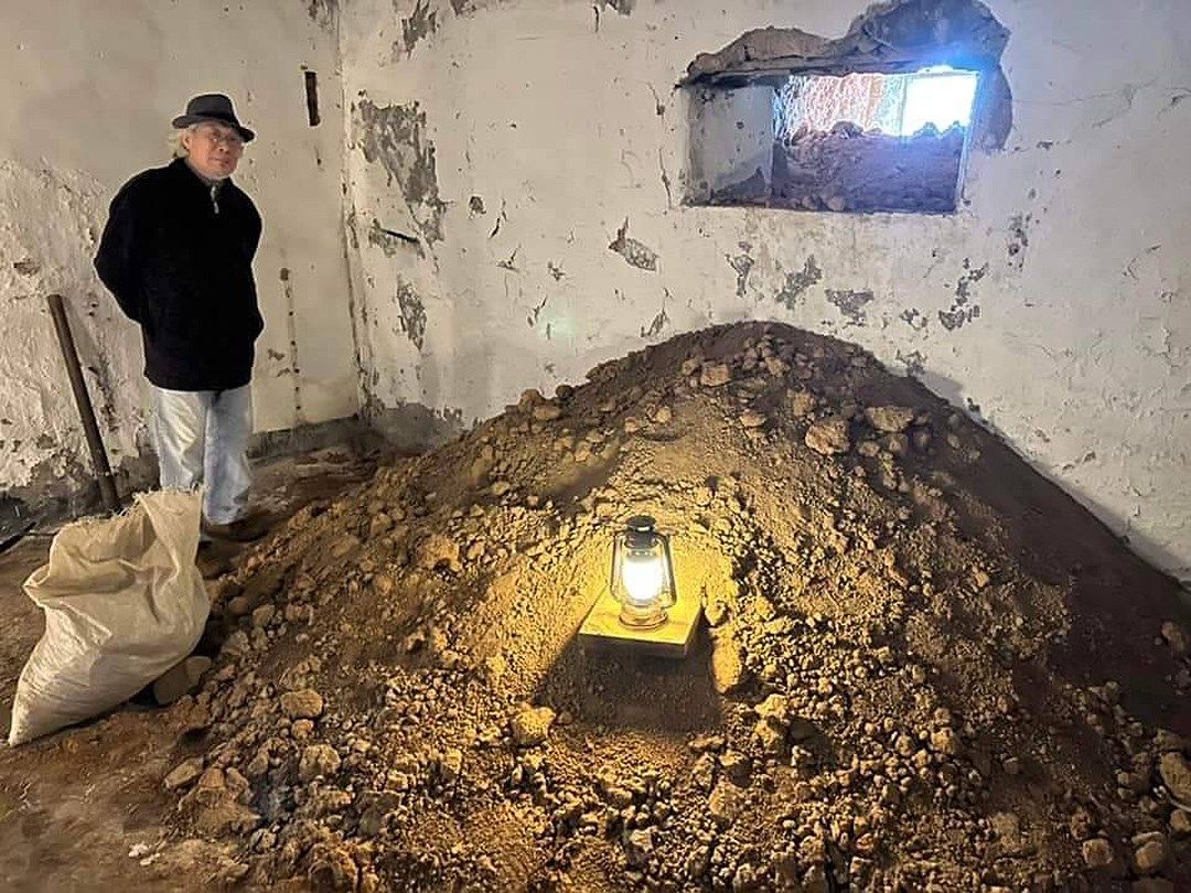 解除戰地政務30年後,曹楷智走在南竿島77據點坑道中,學著父執輩往地下走,選了一堵牆,一邊懷揣著當年軍人挖坑道的心情,一邊挖了個大窟窿,這個大洞,現在成為馬祖國際藝術島策展計畫「地下工事」的作品《地下的故事—永夜淘光》。