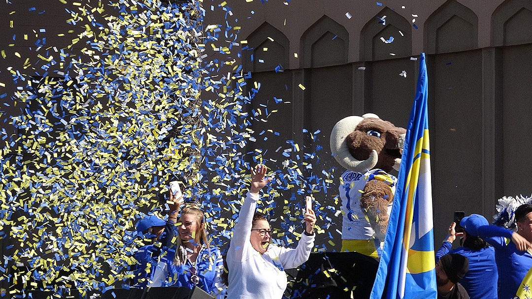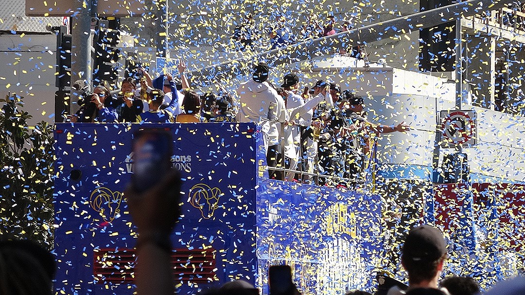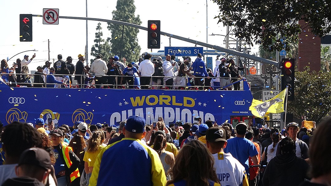 他們在慶祝洛杉磯公羊隊拿下了這屆的美式足球超級盃冠軍。