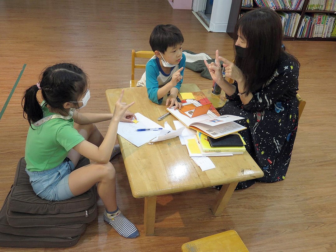 牛暄文說,幾次互動下來,他發現聾人小朋友喜歡直接看書,因為他們無法一面看書,一面又要看老師比手語,「我就會等他們先看完繪本的內容,再問他們,那你們找到小熊了嗎?小熊在哪裡呢?先讓他們看完繪本,大致理解內容之後,我再繼續講解。」