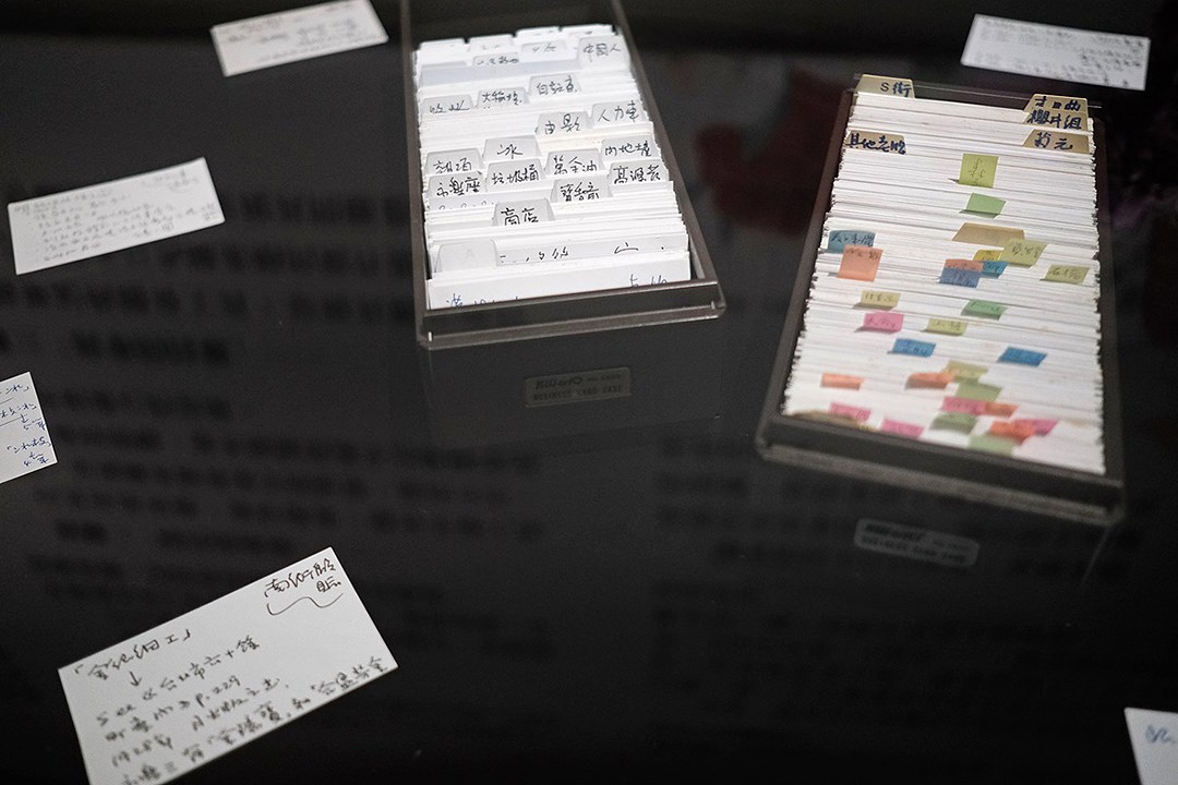 陳柔縉的卡片將人時事地物串聯成網,這是她一輩子都在做的工夫,而且資料越累積越多。顏杏如說,她在小卡片裡記下靈光一現的東西,或許當下還不知道會變成什麼,但可以看到人時事地物的各種交會經過歸納整理後,不同的零碎訊息都變得井然。