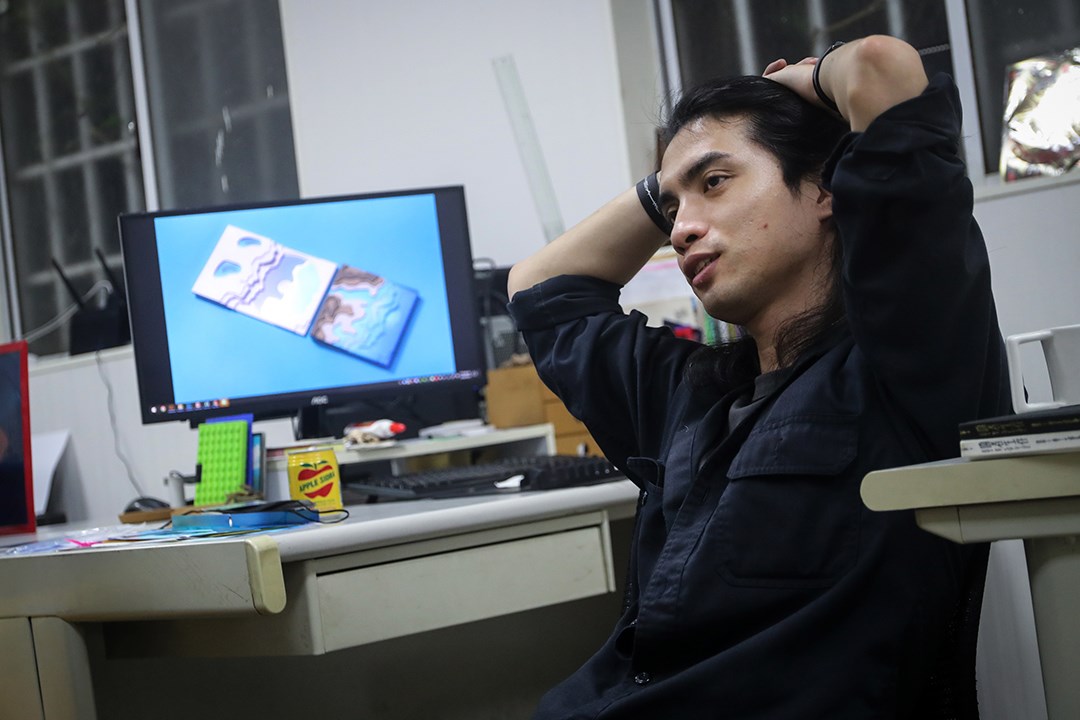 距離從全球音樂人嚮往的殿堂舞台走下,抱走「最佳唱片包裝設計獎」,已過一個多月,採訪邀約仍如雪片飛來,好奇著首次報名、就入圍告捷的年輕設計師模樣。等到真正坐好、在廠內唯一亮著的辦公區說話時,已是晚上8點。