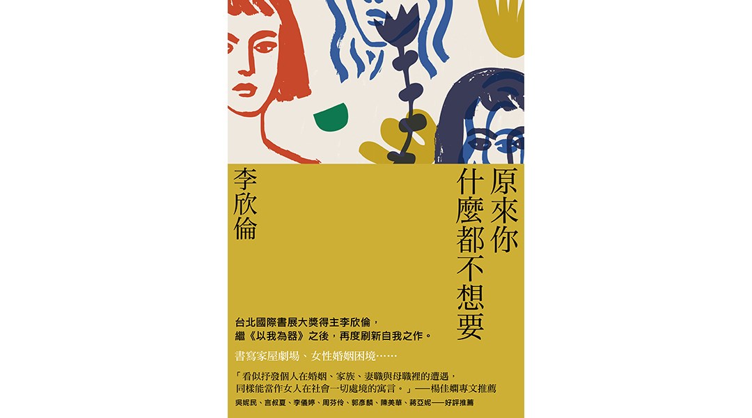 婚姻不需要隱喻,而是平靜。《原來你什麼都不想要》是李欣倫追求平靜的一種實踐。寫作是她的平衡木,只要還能寫,就不會過得太傾斜。雖然說她也承認:「有些段落,我打字時是發抖的。那個寫作過程有點痛苦,特別是第一章,我從中藥行出現的女性臉孔,處理到自己婚姻的那一段。也是寫下來才知道,那件事情對我的打擊很大,否則過了這麼久,我應該可以平心靜氣地寫下來才對。」
