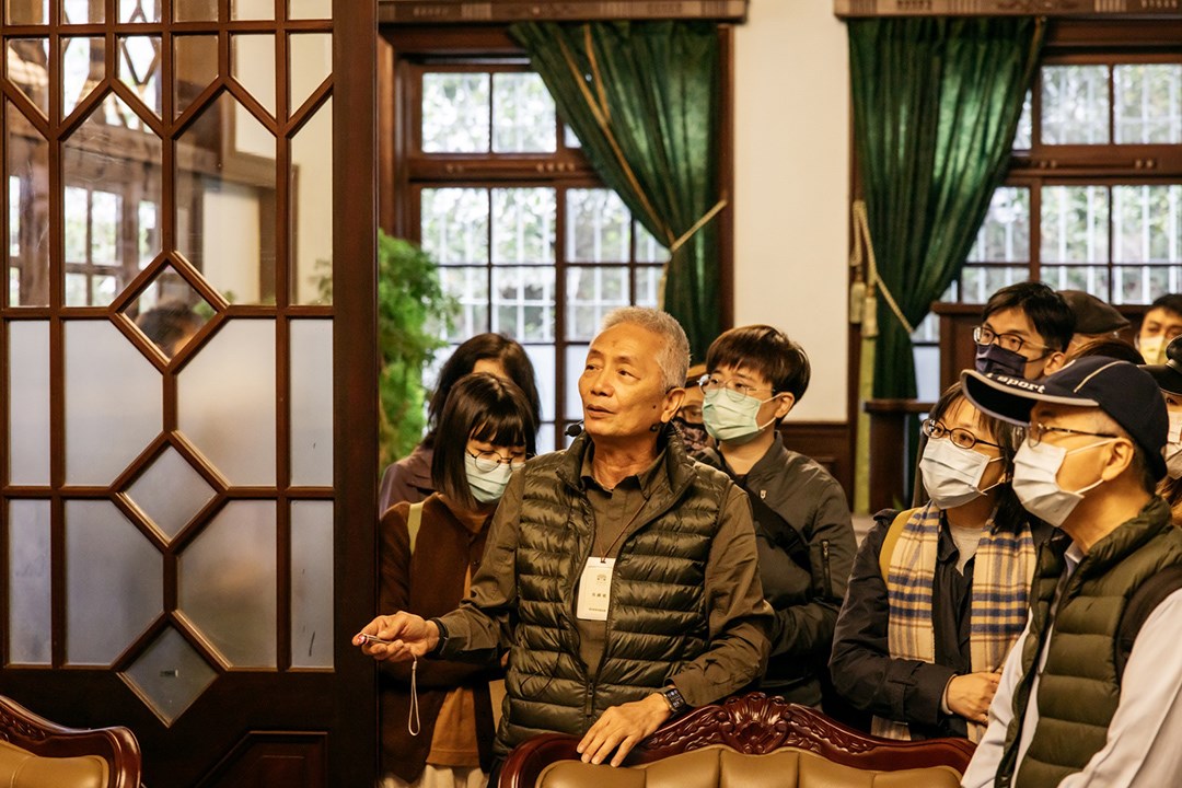 臺灣生態旅遊協會的古蹟課程講師姚其中,沿途介紹慈天宮、忠恕堂與天水堂之堂號由來及建築特色。緊接著來到《茶金》故事靈感來源的姜阿新洋樓,由姜阿新教育基金會吳錫斌董事長介紹洋樓設計細節,談起買回洋樓至修建完成,其中的不易與堅持。